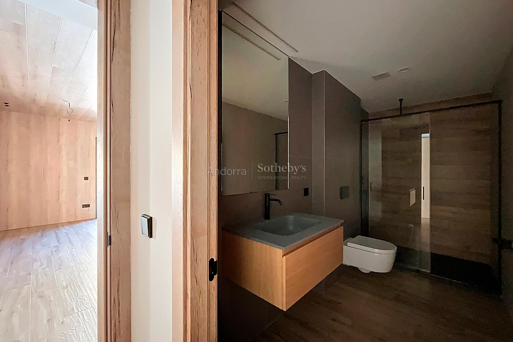 Descubre esta magnífica obra nueva ubicada en El Tarter. Con una superficie de 105,64 m², esta propiedad ofrece un espacio moderno y espacioso para disfrutar al máximo. La cocina, integrada en el salón-comedor, crea un ambiente acogedor y funcional. Desde aquí podrás acceder a una encantadora terraza de 9,42 m² con vistas. Con una suite, 2 habitaciones individuales y dos baños completos, esta vivienda es perfecta para aquellos que buscan comodidad y estilo. El edificio cuenta con un parking privado para dos coches, lo que brinda una comodidad adicional y te permite tener tu vehículo protegido del frío y la nieve. Esta propiedad está equipada con características de alta calidad, como iluminación LED de bajo consumo, suelo radiante y una elegante chimenea eléctrica. Además, dispone de domótica que te permite controlar y gestionar fácilmente los sistemas del hogar desde el teléfono inteligente. Los electrodomésticos de primera calidad ofrecen una experiencia culinaria excepcional, mientras que los suelos radiantes y de gres porcelánico aportan un toque cálido, sofisticado y duradero. La comunidad dispone de un spa y una zona de relax comunitaria, donde podrás disfrutar de piscinas y jacuzzis, creando un ambiente de bienestar y relajación. Además, un patio central con zona verde completa este entorno, proporcionando un espacio tranquilo y natural. No pierdas la oportunidad de vivir en esta maravillosa propiedad en El Tarter.Características