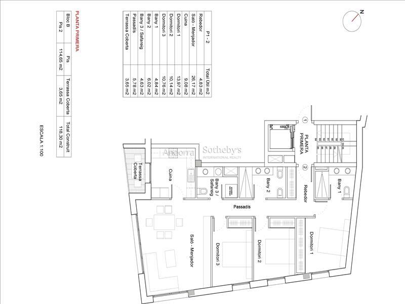 Esta magnífica vivienda se encuentra ubicada en un nuevo complejo residencial en construcción en Escaldes-Engordany, Residencial Marió, a pocos minutos del centro comercial y financiero del país. Con una superficie de 118 m², esta propiedad moderna cuenta con una terraza de 5,66 m², ofreciendo un ambiente luminoso y soleado gracias a su orientación óptima. La vivienda consta de 3 habitaciones dobles, 1 de ellas en suite. Además del baño de la suite, dispone de 1 baño completo independiente. Disfruta de un amplio salón comedor y una cocina independiente, ambos conectados con la terraza, creando un espacio perfecto para el entretenimiento. Entre las características destacadas se incluyen calidades de alta gama, calefacción por aerotermia y bomba de calor, persianas de aluminio motorizadas, iluminación LED, suelo radiante, entre otras. Asimismo, hay plazas de aparcamiento y trasteros disponibles según tus necesidades, no incluidos en el precio de la vivienda. La entrega de esta propiedad está prevista para abril de 2025, brindándote la oportunidad de asegurar tu hogar en este exclusivo complejo residencial.Características