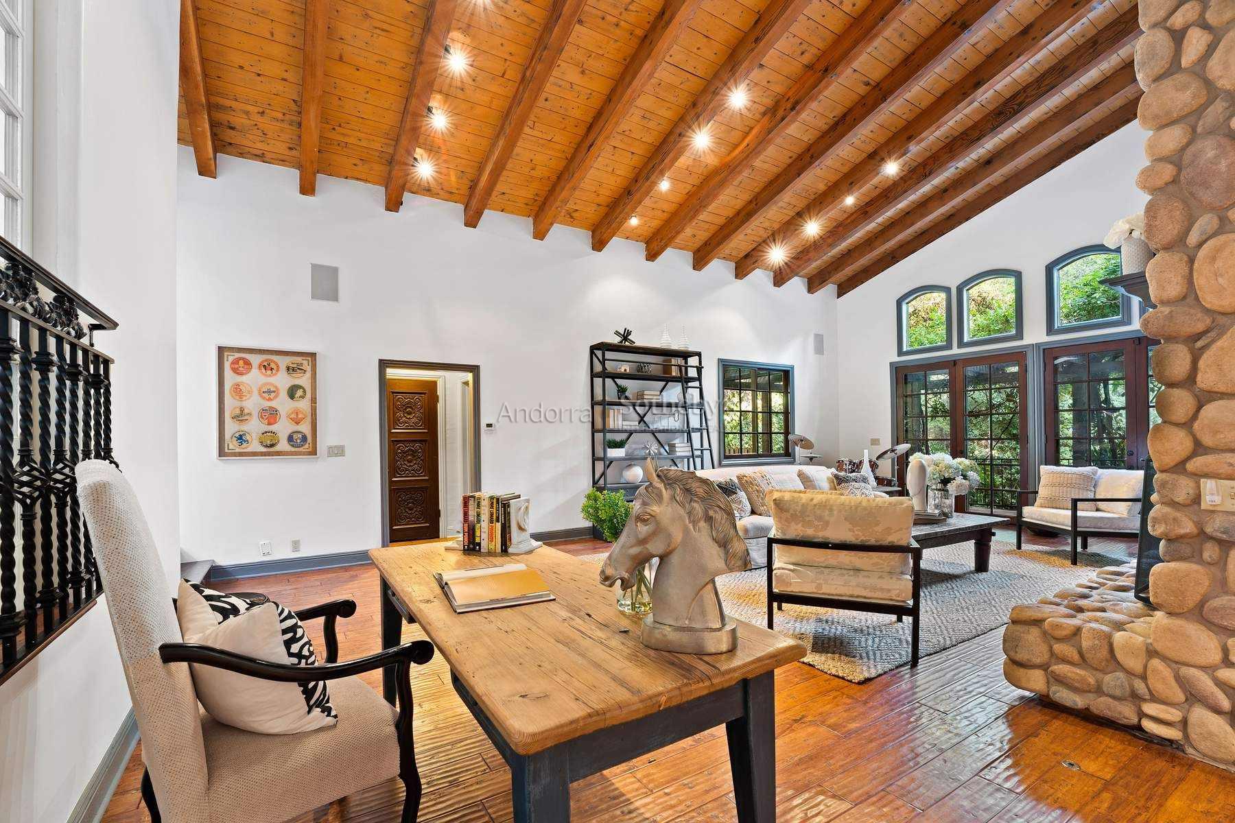 Impressionant ranxo per comprar. Un oasi serè i privat molt pròxim a la ciutat. Els terrenys tipus parc inclouen un antic roureda, pastures oberts, 2 sorres, 7 quadres i un graner de 60 anys. Aquesta bella finca espanyola compte 6100 peus quadrats d'espai habitable recentment remodelat amb una cuina de xef completa amb electrodomèstics Viking i Sub Zero, cinema a casa, oficina privada amb vistes espectaculars, sala familiar amb sostre de volta amb una impressionant xemeneia de llenya que s'obre a una terrassa envoltant amb vista l'àrea de la piscina i la sorra per a cavalls. Apartament separat per als cuidadors dels cavalls. Gaudi en l'acollidora sala d'estar a l'aire lliure amb una bonica llar de foc i un centre de barbacoa amb vista als jardins que envolten la propietat.Característiques