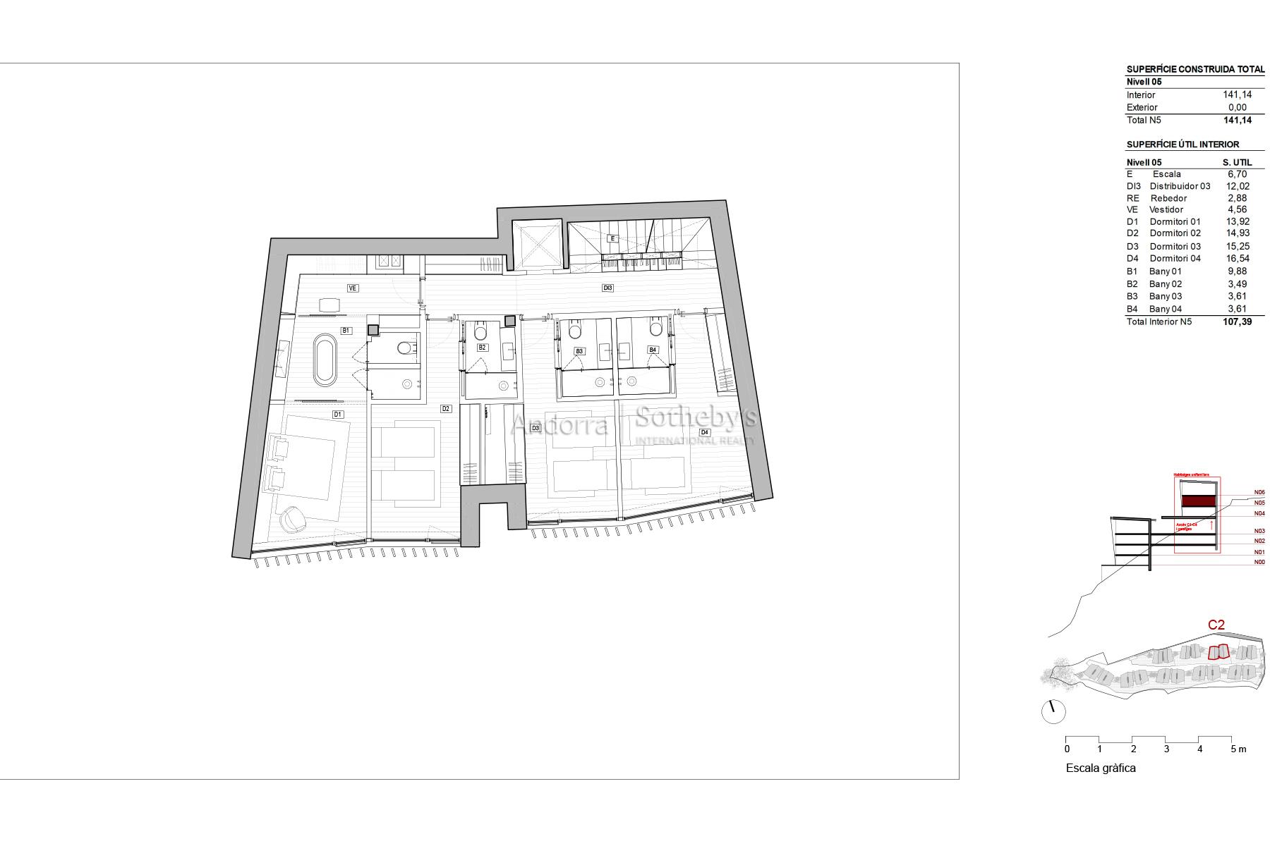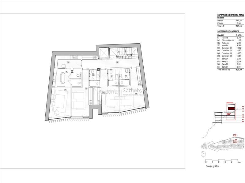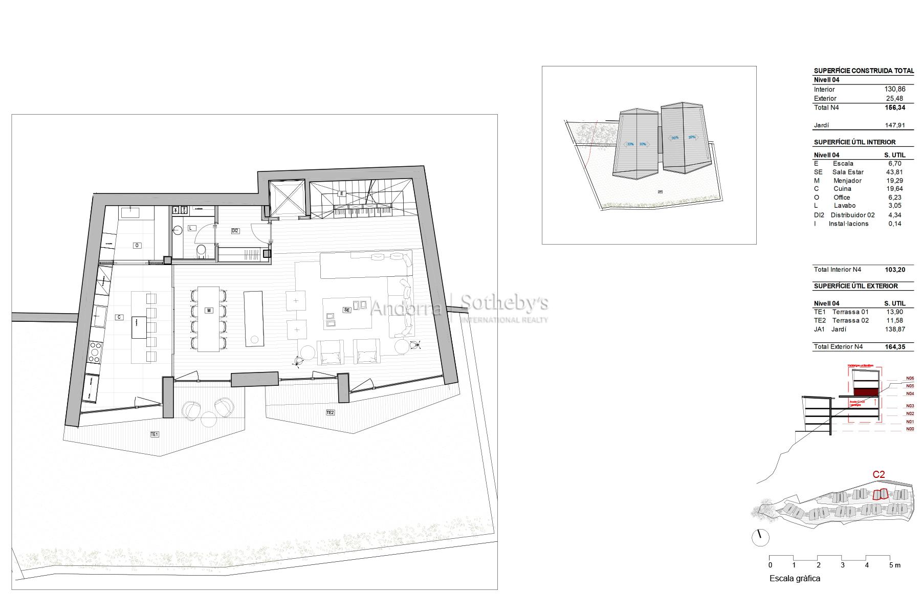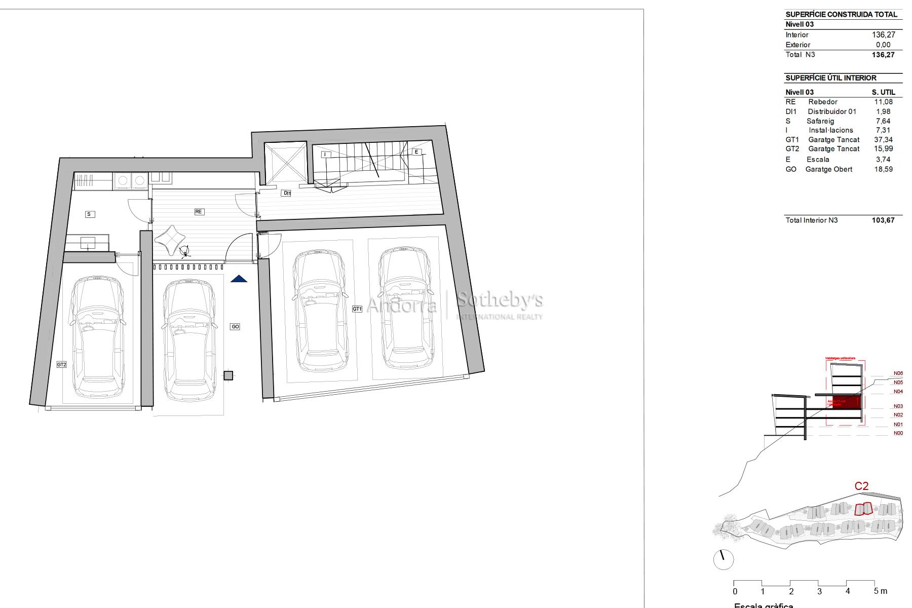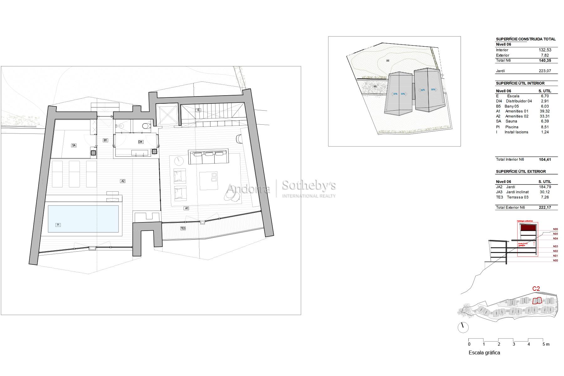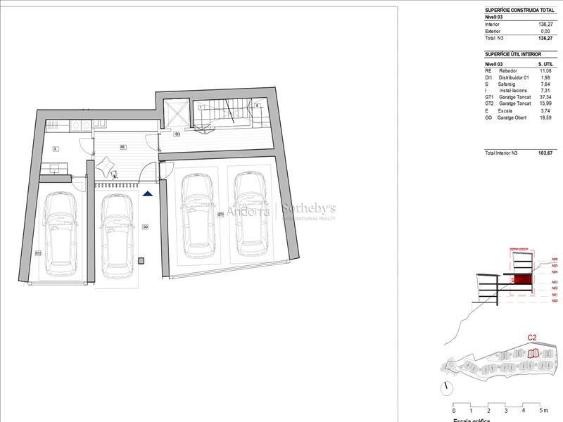 CASA 2 Bienvenidos a su nuevo hogar en Els Vilars, Escaldes, donde la elegancia y la naturaleza se fusionan en perfecta armonía. Situada en un entorno natural privilegiado, esta villa unifamiliar se encuentra a tan solo unos minutos del vibrante centro de la capital andorrana, ofreciendo un acceso inmediato a todos los servicios, comercios y áreas de ocio que la ciudad ofrece. Diseñada con un enfoque sostenible, esta propiedad destaca por su estructura con amplios ventanales que permiten la entrada de luz natural, creando un ambiente de tranquilidad y pureza. Las impresionantes vistas a Escaldes y las majestuosas montañas que la rodean aportan un valor añadido, y su orientación sur garantiza una iluminación excepcional durante todo el día, desde el amanecer hasta el atardecer. La entrada a la villa revela una planta baja acogedora, diseñada para la zona de día, con una moderna sala de estar y una cocina con isla independiente que se distingue por su funcionalidad. Todas las estancias de la planta baja conectan directamente con una bonita terraza-jardín, proporcionando un espacio ideal para disfrutar del clima y del entorno natural. En la primera planta, encontrará un área reservada para la zona de noche, con cuatro suites equipadas con baño privado y armarios independientes, garantizando la máxima privacidad y confort. La segunda planta se transforma en un auténtico oasis de bienestar, con un gimnasio, piscina, spa y sala polivalente, todo ello con las mejores vistas de la región. Finalmente, el sótano ofrece un amplio aparcamiento, trastero y lavadero, así como un acceso fácil y funcional a la vivienda. Con un diseño pensado para el ahorro energético, esta villa complementa su confort con jardines y zonas verdes que crean un espacio de vida íntimo y placentero. Descubra la verdadera esencia de la vida andorrana en esta villa única, donde cada detalle ha sido cuidado para ofrecerle el máximo confort y una vida plena de armonía y belleza.Características