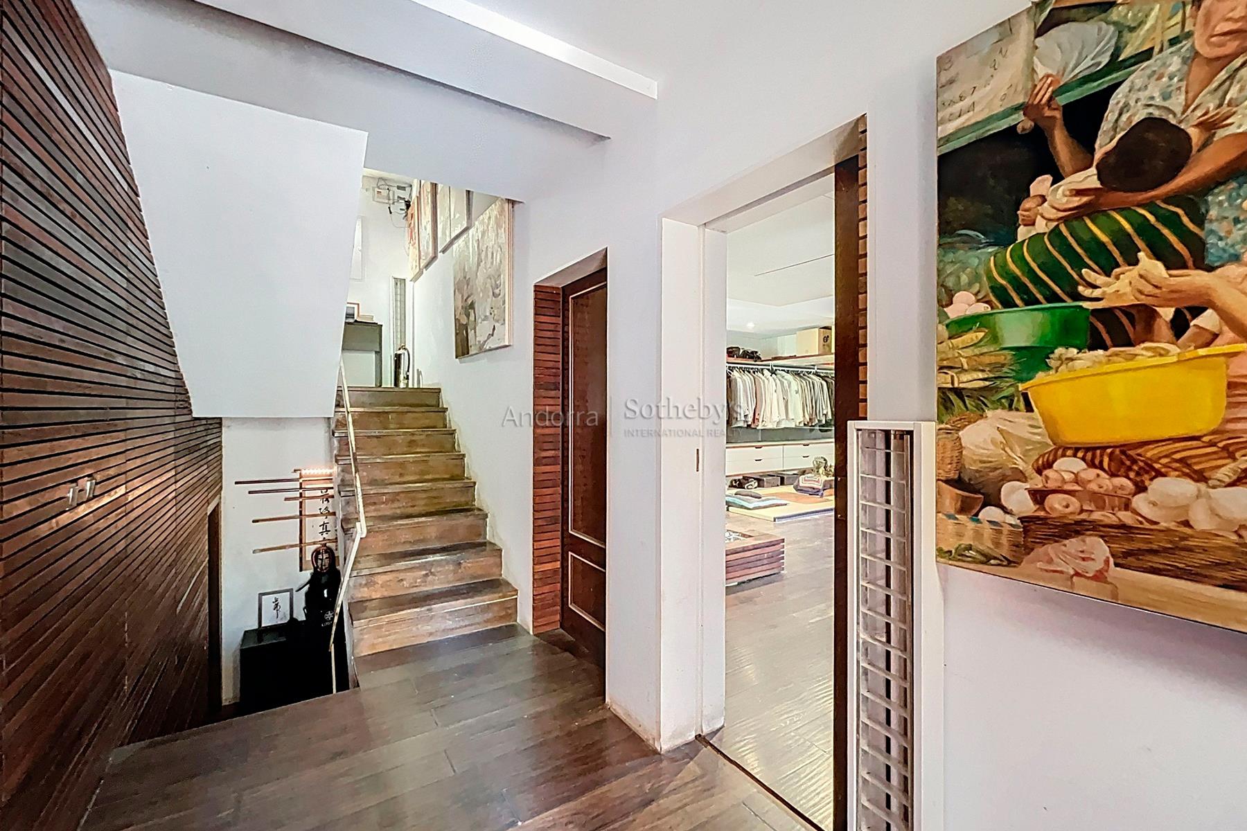 Descubre esta impresionante casa ubicada en La Massana en una parcela de 400 m² que combina diseño moderno, confort y estilo zen. Con una superficie total de 390 m² distribuidos en tres plantas, esta propiedad ofrece espacios amplios y muy bien acabados, perfectos para quienes buscan calidad de vida y privacidad. Distribución y características principales La planta superior de 133 m² cuenta con un gran salón con chimenea central y doble altura. La cocina de grandes dimensiones con estilo industrial tiene acceso directo a una terraza ajardinada orientada al sur, ideal para momentos de calma y disfrute. Debajo de esta, por el jardín y la entrada desde la calle, de 133 m², encontramos un dormitorio principal con vestidor, baño privado, amplia ducha y jacuzzi para relajarse. También cuenta con una zona de aparcamiento privado con capacidad para dos coches. Además, hay un espacio para la caldera y el depósito de agua. La planta inferior a esta, de 124 m², incluye dos dormitorios con acceso a los jardines, dos baños completos y una amplia sala polivalente con grandes ventanas que miran hacia el jardín lateral. Esta sala es ideal para deportes, estudios o espacios de reunión. Espacios exteriores Los jardines de 252 m² que rodean la casa están rehabilitados siguiendo la estética zen japonesa conocida como Kare Sandui, creando un ambiente de calma y armonía. Los jardines comparten espacios con dos terrazas-jardín comunitarias en el lado sur, que permiten disfrutar del sol y la naturaleza. Otros detalles destacados La casa ha sido reformada con aislamiento térmico que incluye laminados Tecnol y cerramientos de Placo, así como suelos de madera que aportan calidez, aunque necesitaría una renovación en ciertas zonas. El sistema de calefacción combina radiadores y suelo radiante en el pasillo y dormitorio principal, ofreciendo una distribución cómoda y eficiente. Este hogar combina modernidad y tranquilidad en un entorno natural envidiable en La Massana, haciendo que sea la opción ideal para familias que buscan calidad de vida en un ambiente acogedor y exclusivo.Características