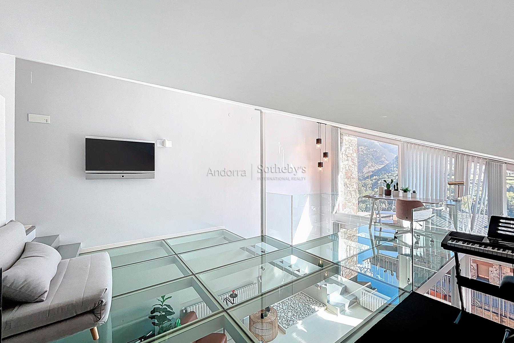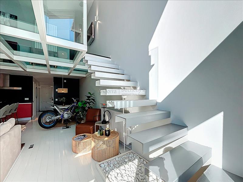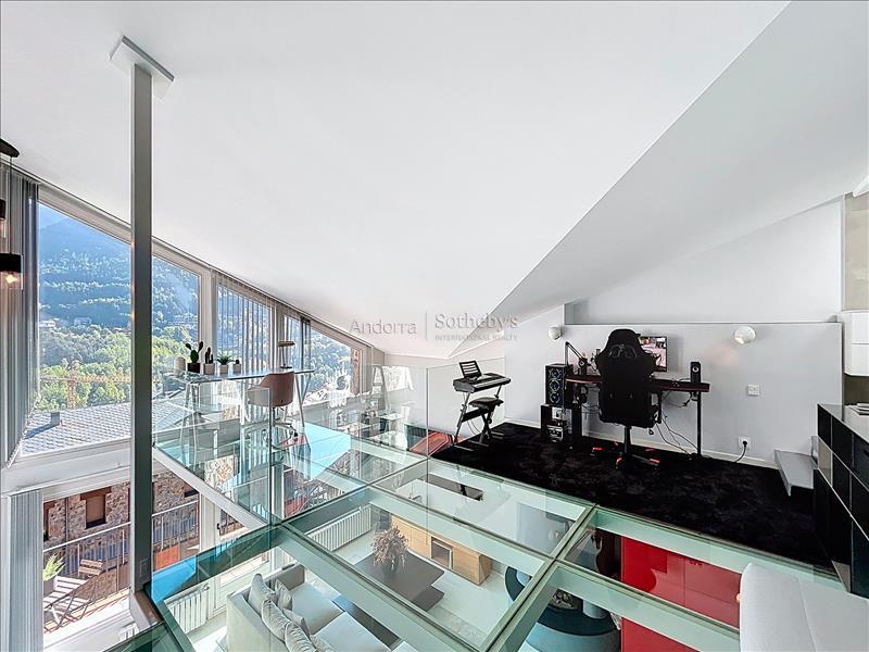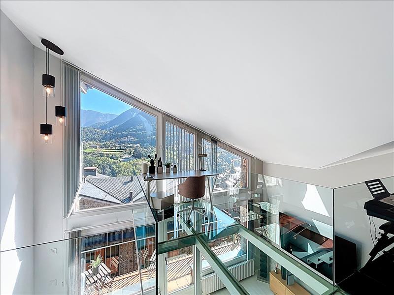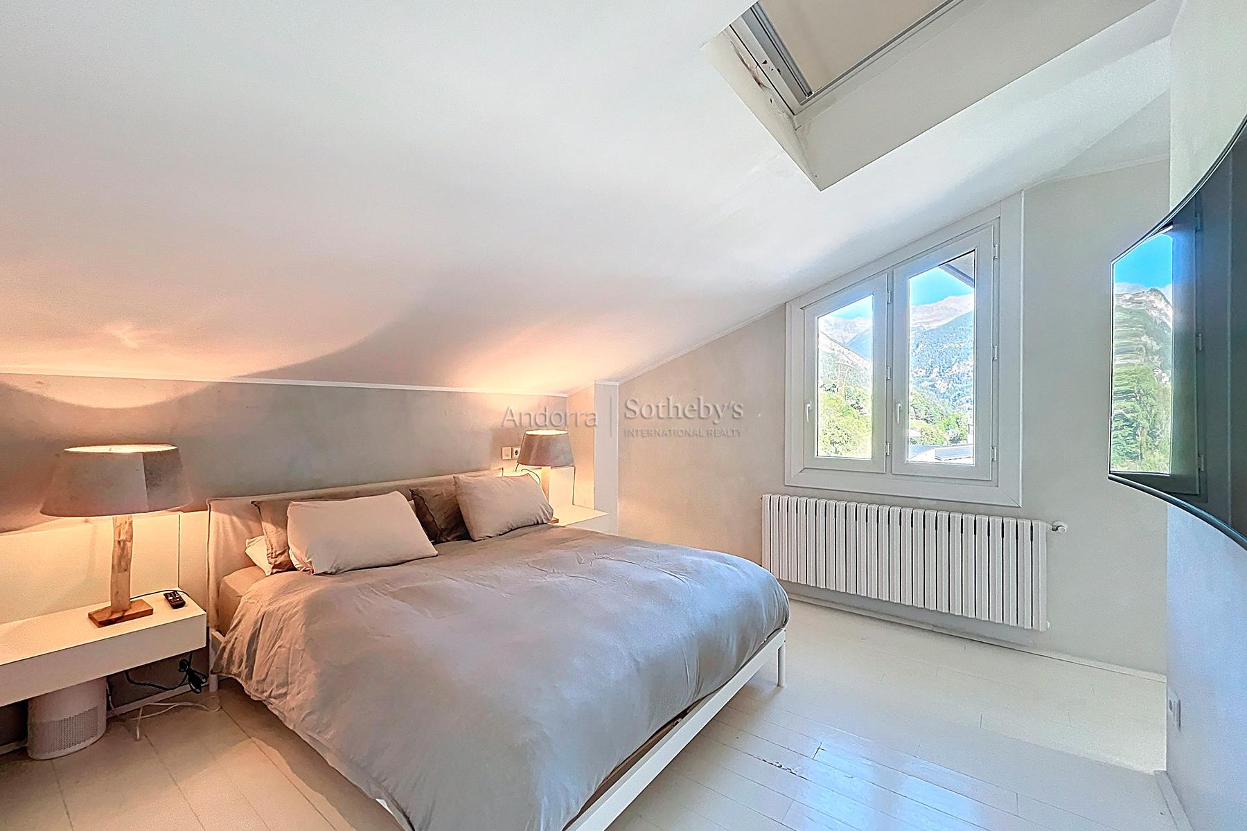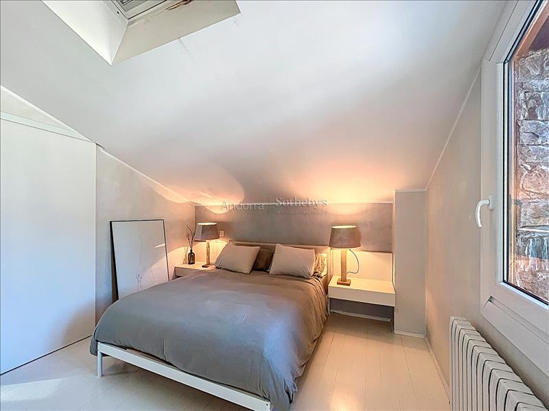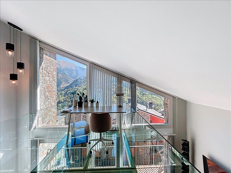Dúplex para comprar en la carretera d'Escàs, cerca del centro con todos sus comercios, servicios y del telecabina que lleva a las pistas de Grandvalira Resorts en los sectores de Pal-Arinsal, en una zona residencial privilegiada de la parroquia de La Massana. La vivienda consta de 150 m² construidos, con 30 m² de amplio garaje tipo box y una terraza con vistas y sol. La entrada se realiza por la planta inferior, a pie de calle, y dispone de una habitación doble ideal para invitados; un baño completo con ducha y una habitación para lavadero. Siguiendo la entrada, encontramos el espacioso salón-comedor con la cocina integrada. El salón, con amplios ventanales que permiten la entrada de luz natural durante todo el día, la chimenea de leña y con salida a la gran terraza con vistas inmejorables hacia el Casamanya; la cocina es de la marca Boffi, totalmente equipada con electrodomésticos Gaggenau. Accedemos a la planta superior por unas escaleras donde nos espera una sala habilitada como despacho o zona de música y ocio, con ventanales con vistas a la montaña y suelo de vidrio transparente que da un efecto de amplitud al espacio. También aquí se encuentra el área de noche, que dispone de una master suite con vestidor y baño completo con ventanas panorámicas en el techo. La propiedad reformada, de estilo actual y moderno, de construcción muy cuidada con paredes exteriores revestidas de piedra, suelos de parquet y techo cubierto con láminas de pizarra, elementos que aportan elegancia y calidez, es totalmente exterior y soleada, ubicada en una zona exclusiva y privilegiada del Principado de Andorra. Por su total comodidad, incluye un parking tipo box con capacidad para 2 coches, motos y espacio de trastero. El espacio y el confort definen todos los rincones de esta propiedad única, diseñada para una vida relajada y sin estrés. Un sensacional dúplex, perfecto para alejarse del bullicio de la ciudad y disfrutar de jornadas tranquilas en un entorno espléndido.Características