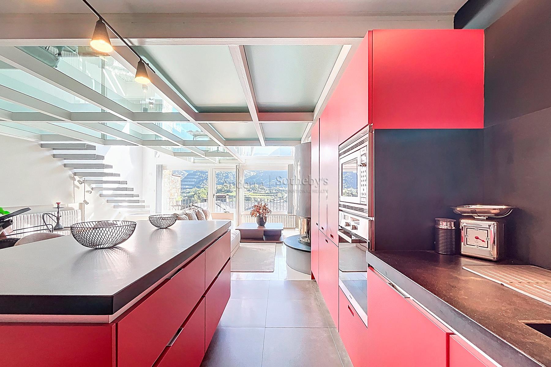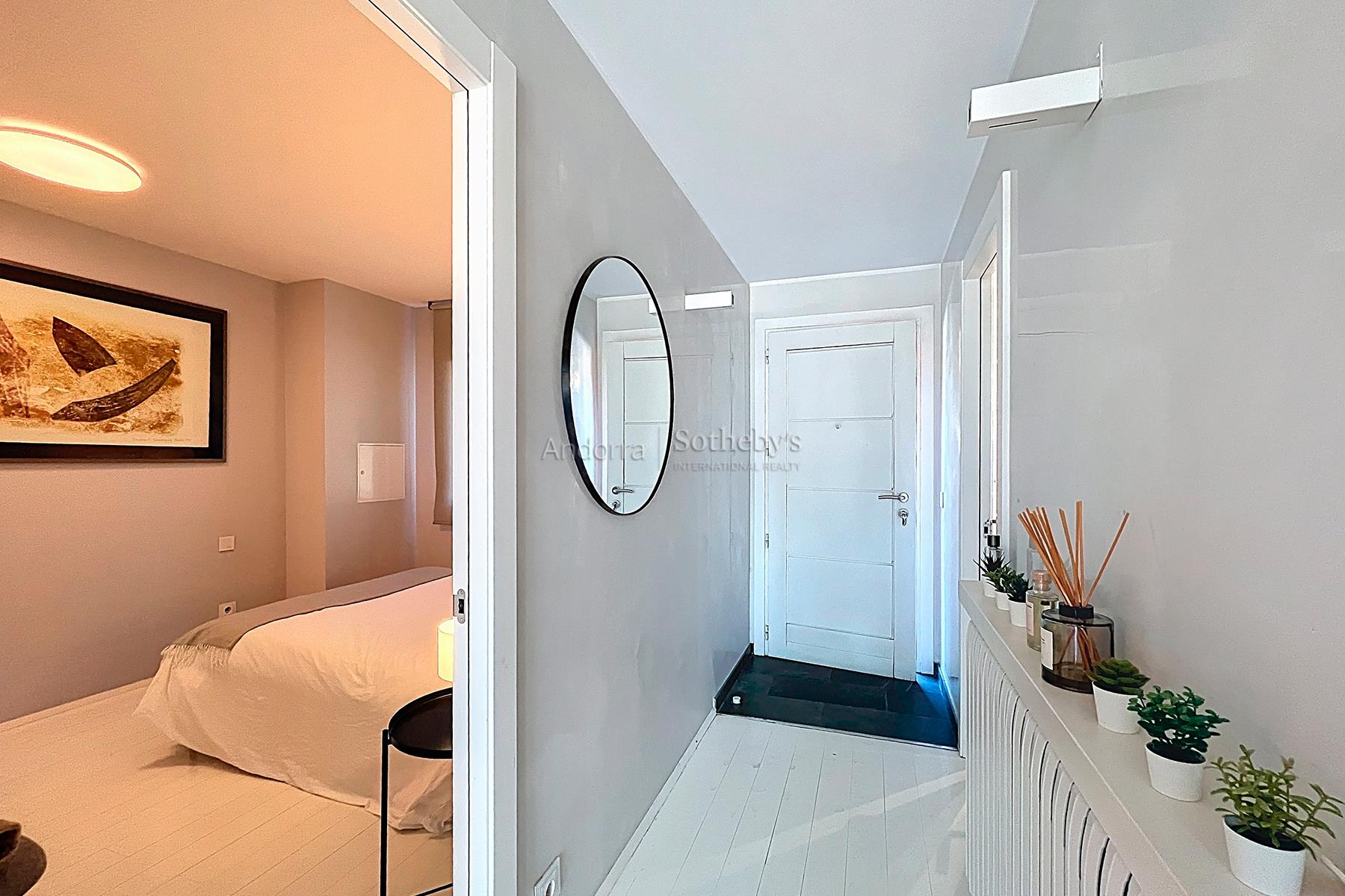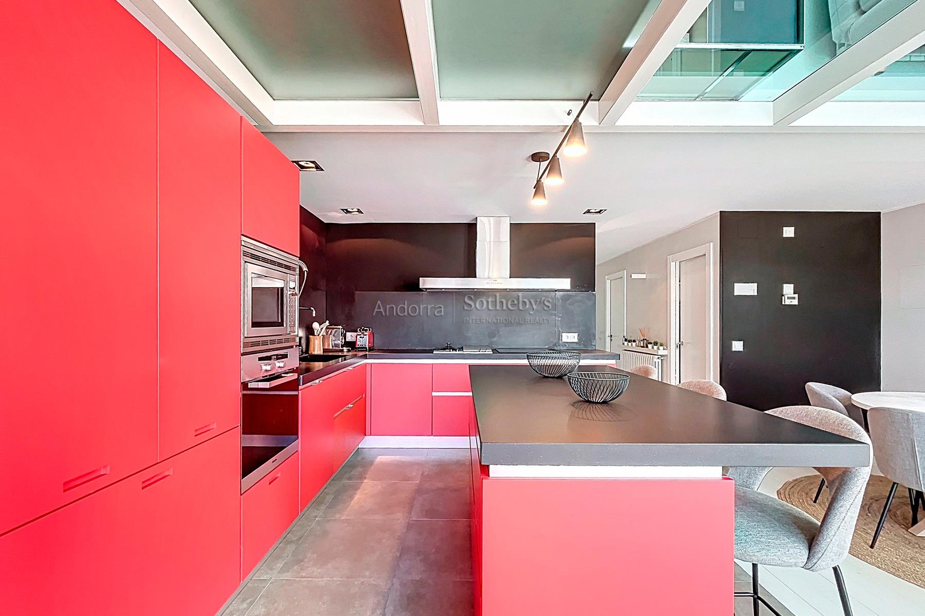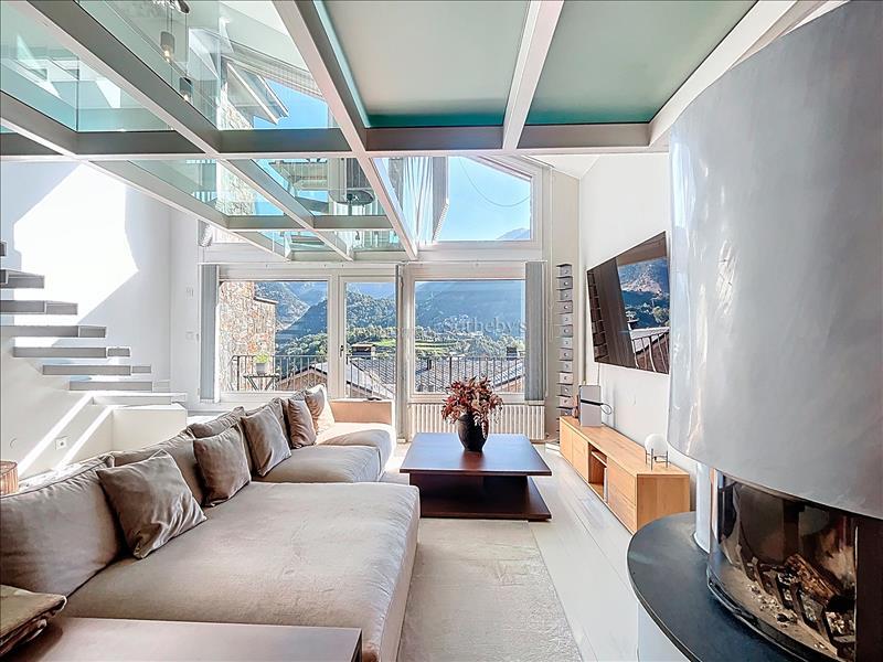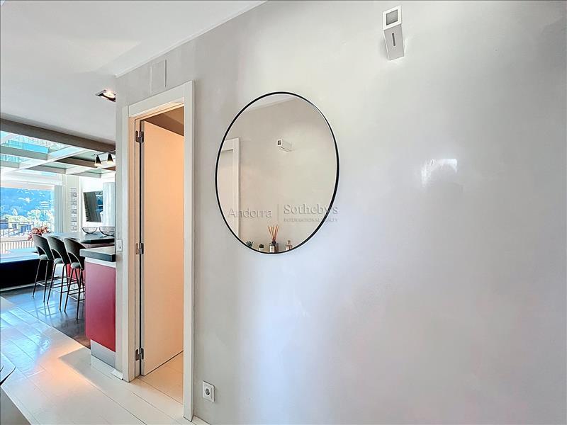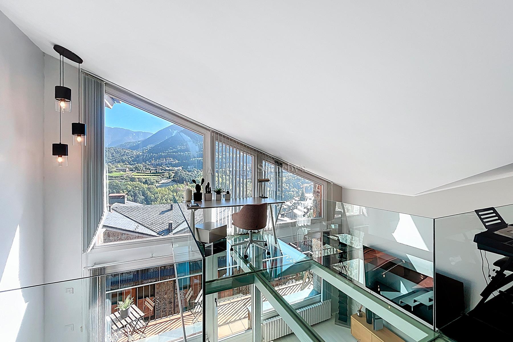 Dúplex para comprar en la carretera d'Escàs, cerca del centro con todos sus comercios, servicios y del telecabina que lleva a las pistas de Grandvalira Resorts en los sectores de Pal-Arinsal, en una zona residencial privilegiada de la parroquia de La Massana. La vivienda consta de 150 m² construidos, con 30 m² de amplio garaje tipo box y una terraza con vistas y sol. La entrada se realiza por la planta inferior, a pie de calle, y dispone de una habitación doble ideal para invitados; un baño completo con ducha y una habitación para lavadero. Siguiendo la entrada, encontramos el espacioso salón-comedor con la cocina integrada. El salón, con amplios ventanales que permiten la entrada de luz natural durante todo el día, la chimenea de leña y con salida a la gran terraza con vistas inmejorables hacia el Casamanya; la cocina es de la marca Boffi, totalmente equipada con electrodomésticos Gaggenau. Accedemos a la planta superior por unas escaleras donde nos espera una sala habilitada como despacho o zona de música y ocio, con ventanales con vistas a la montaña y suelo de vidrio transparente que da un efecto de amplitud al espacio. También aquí se encuentra el área de noche, que dispone de una master suite con vestidor y baño completo con ventanas panorámicas en el techo. La propiedad reformada, de estilo actual y moderno, de construcción muy cuidada con paredes exteriores revestidas de piedra, suelos de parquet y techo cubierto con láminas de pizarra, elementos que aportan elegancia y calidez, es totalmente exterior y soleada, ubicada en una zona exclusiva y privilegiada del Principado de Andorra. Por su total comodidad, incluye un parking tipo box con capacidad para 2 coches, motos y espacio de trastero. El espacio y el confort definen todos los rincones de esta propiedad única, diseñada para una vida relajada y sin estrés. Un sensacional dúplex, perfecto para alejarse del bullicio de la ciudad y disfrutar de jornadas tranquilas en un entorno espléndido.Características