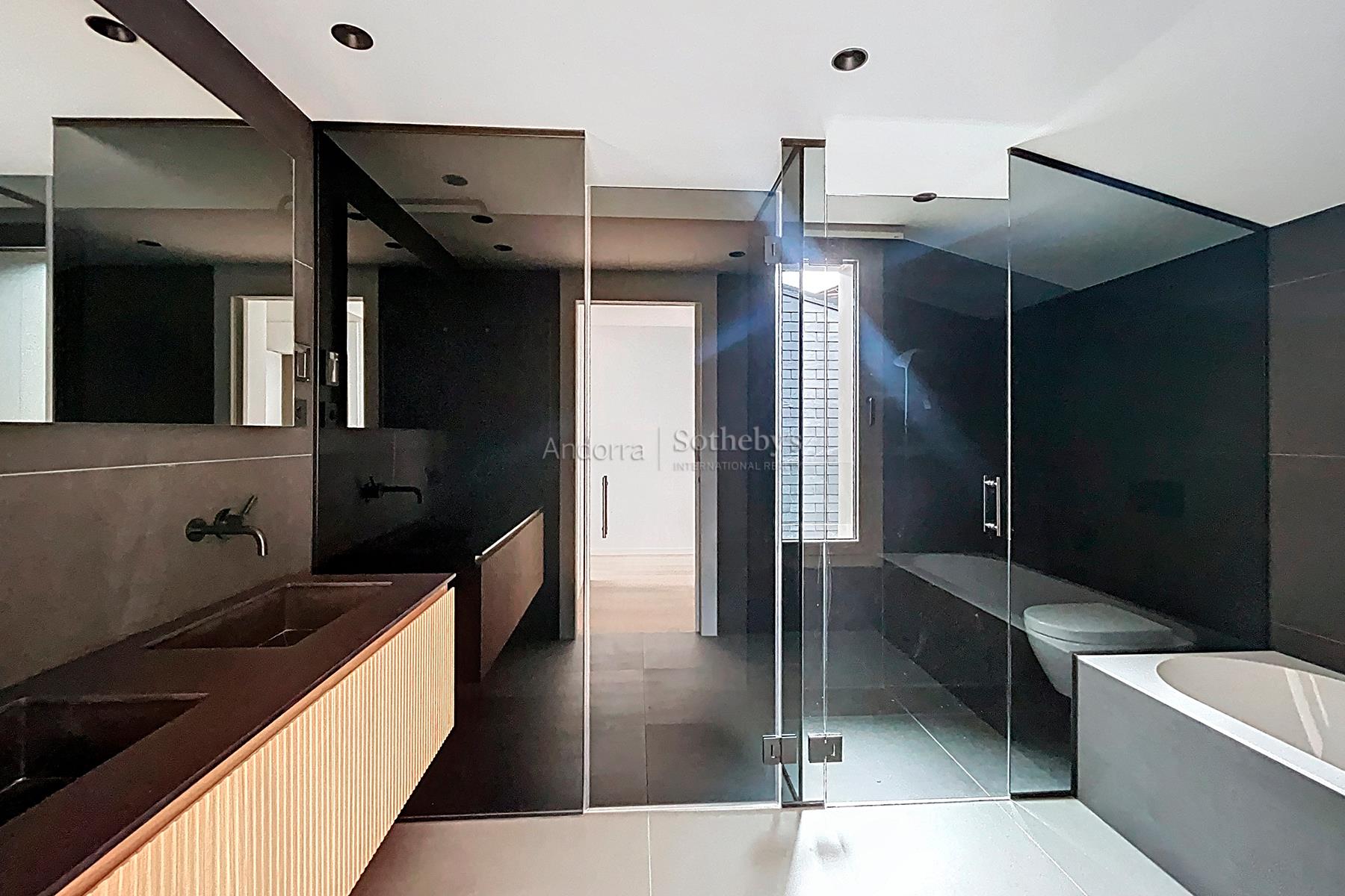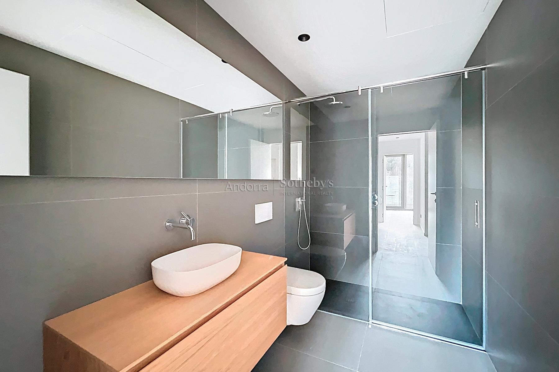 Se presenta esta distinguida casa adosada de 359,6 m² construidos, distribuida en cuatro plantas y diseñada para ofrecer un equilibrio perfecto entre confort, amplitud y funcionalidad en un entorno residencial privilegiado. La propiedad dispone de un amplio subsuelo de 109,6 m², destinado a aparcamiento, con capacidad para 6 a 7 vehículos, proporcionando un valor añadido excepcional en términos de comodidad y almacenamiento. La planta baja, de 81 m², alberga un elegante salón-comedor de concepto abierto con cocina integrada y baño, configurando un espacio moderno, luminoso y funcional. Desde esta planta se accede directamente a una terraza que conecta con un jardín de 143,5 m², creando un entorno ideal para el disfrute del exterior y la vida social. En la primera planta, de 87,7 m², se encuentran tres habitaciones y dos baños completos, con una distribución pensada para garantizar privacidad, confort y una óptima organización de los espacios. La planta bajo cubierta, de 81,3 m², ofrece un espacio versátil que puede adaptarse a diferentes usos, como despacho, sala de ocio o zona de descanso, aportando un valor añadido a la vivienda. La casa se completa con un lavabo de cortesía y una zona de lavandería, integrando practicidad en el día a día sin renunciar a la elegancia. Gracias a su cuidada distribución, generosas superficies y ubicación en L’Aldosa, esta propiedad representa una excelente oportunidad para quienes buscan una vivienda de alto nivel, donde la calidad de vida, la amplitud y el confort son protagonistas.