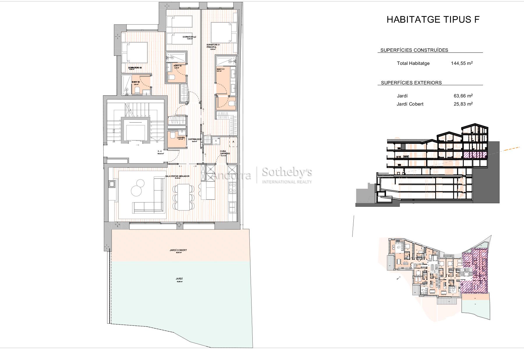 Exclusivo apartamento de obra nueva en venta en Escaldes-Engordany, con una superficie construida de 144,55 m², diseñado para ofrecer amplitud, confort y privacidad. La vivienda se distribuye en tres dormitorios en suite, todos con baño completo, y dispone además de un aseo de cortesía. El salón-comedor con cocina abierta crea un espacio moderno y luminoso, con acceso directo a los jardines privados, que incluyen un jardín cubierto de 25,83 m² y un jardín descubierto de 63,66 m², ideales para disfrutar del exterior durante todo el año. El apartamento cuenta también con sala de lavandería independiente, acabados contemporáneos y una distribución cuidadosamente pensada para el máximo confort. Plaza de aparcamiento y trastero no incluidos en el precio. El comprador podrá elegir el box según sus necesidades. Una oportunidad excepcional para vivir o invertir en una de las zonas más demandadas de Escaldes-Engordany.Características