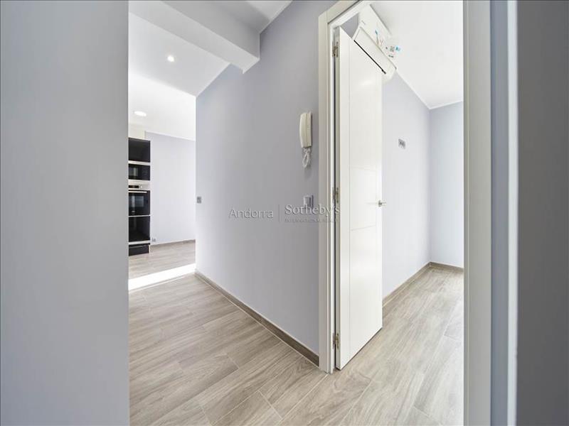 Descubre este encantador piso totalmente reformado, situado en el corazón de Andorra la Vella, al lado de todos los servicios esenciales y en uno de los principales ejes comerciales del Principado. Con una superficie de 51,53 m², esta propiedad cuenta con una agradable terraza que ofrece vistas espectaculares a la montaña y a la ciudad. El interior incluye un amplio salón-comedor con acceso a la terraza, ideal para disfrutar de momentos de relax y ocio. La cocina, diseñada en un estilo abierto, conecta perfectamente con el salón-comedor y tiene acceso a un patio interior, aportando funcionalidad. El piso dispone de una habitación doble equipada con armarios empotrados, proporcionando un amplio espacio de almacenamiento. Además, encontrarás un baño completo con toallero calefactor para mayor comodidad. La vivienda está equipada con un sistema de aire acondicionado frío-calor, y el suelo de cerámica que imita parquet aporta un toque moderno y cálido a todas las estancias. Nota: Este piso no incluye plaza de aparcamiento ni trastero. ¡No dejes pasar esta oportunidad de habitar en un lugar céntrico y acogedor en Andorra la Vella!Características