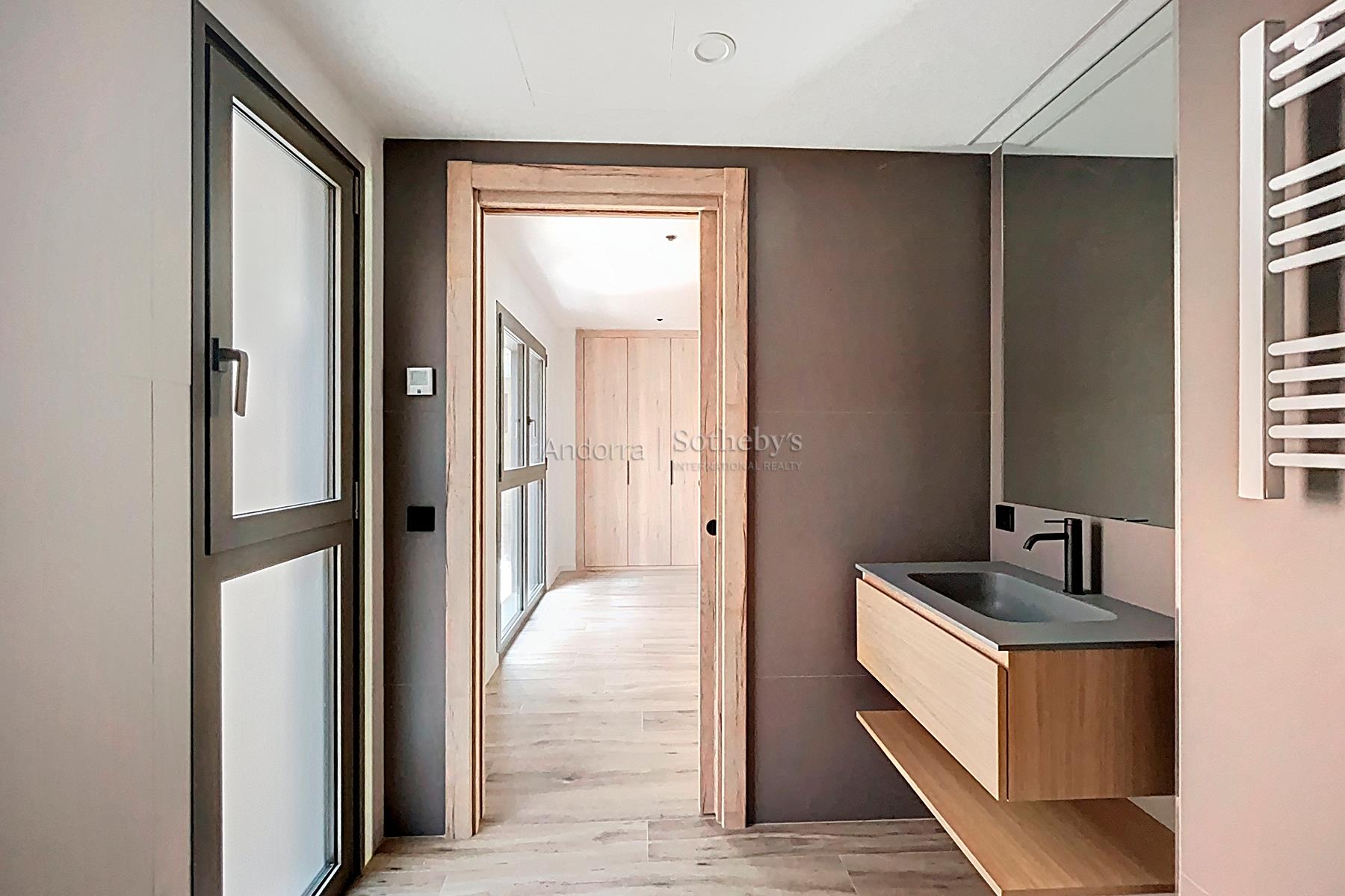 Descubre esta magnífica obra nueva ubicada en El Tarter. Con una superficie de 101,81 m2, esta propiedad ofrece un espacio moderno y espacioso para disfrutarlo al máximo. Con dos amplias habitaciones dobles, incluyendo una suite impresionante, este hogar es perfecto para aquellos que buscan comodidad y estilo. La cocina, integrada en el salón comedor, crea un ambiente acogedor y funcional. Desde aquí podrás acceder a una encantadora terraza de 7,87m2 con vistas. El edificio cuenta con un box privado para un coche, lo que brinda una comodidad adicional y permite tener tus vehículos protegidos del frío y la nieve. Esta propiedad está equipada con características de alta calidad, como iluminación LED de bajo consumo, suelo radiante y una elegante chimenea eléctrica. Además, cuenta con domótica que te permite controlar y gestionar fácilmente los sistemas del hogar desde su teléfono inteligente. Los electrodomésticos de primera calidad le ofrecen una experiencia culinaria excepcional, mientras que los suelos radiantes, y de gres porcelánico añaden un toque cálido, de sofisticación y durabilidad. La comunidad dispone de un spa y una zona de relax comunitario, donde podrás disfrutar de piscinas y jacuzzis, creando un ambiente de bienestar y relajación. Además un patio central con zona verde completa este entorno, proporcionando un espacio tranquilo y natural. No pierdas la oportunidad de vivir en esta maravillosa propiedad en El Tarter.Características