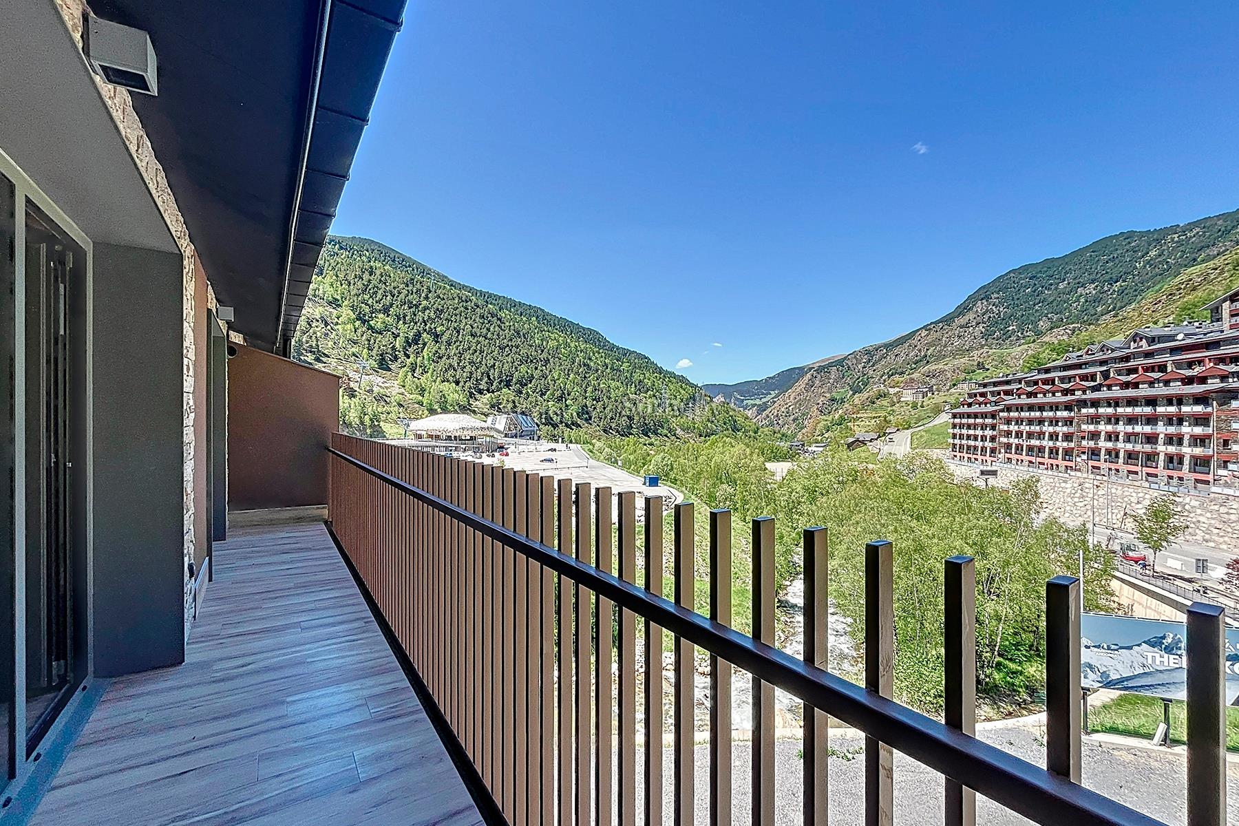 Descubre esta magnífica obra nueva ubicada en El Tarter. Con una superficie de 99,40 m2, esta propiedad ofrece un espacio moderno y espacioso para disfrutarlo al máximo. Con dos amplias habitaciones dobles, incluyendo una suite impresionante, este hogar es perfecto para aquellos que buscan comodidad y estilo. La cocina, integrada en el salón comedor, crea un ambiente acogedor y funcional. Desde aquí podrás acceder a una encantadora terraza de 8,95 m2 con vistas panorámicas al Valle de Canillo, y sol de tarde. Imagina disfrutar de las comidas exteriores o relajarte mientras contemplas las impresionantes vistas y las puestas de sol. El edificio cuenta con un box privado para dos coches, lo que brinda una comodidad adicional y permite tener tus vehículos protegidos del frío y la nieve. Esta propiedad está equipada con características de alta calidad, como iluminación LED de bajo consumo, suelo radiante y una elegante chimenea eléctrica. Además, cuenta con domótica que te permite controlar y gestionar fácilmente los sistemas del hogar desde su teléfono inteligente. Los electrodomésticos de primera calidad le ofrecen una experiencia culinaria excepcional, mientras que los suelos radiantes, y de gres porcelánico añaden un toque cálido, de sofisticación y durabilidad. La comunidad dispone de un spa y una zona de relax comunitario, donde podrás disfrutar de piscinas y jacuzzis, creando un ambiente de bienestar y relajación. Además un patio central con zona verde completa este entorno, proporcionando un espacio tranquilo y natural. No pierdas la oportunidad de vivir en esta maravillosa propiedad en El Tarter.
