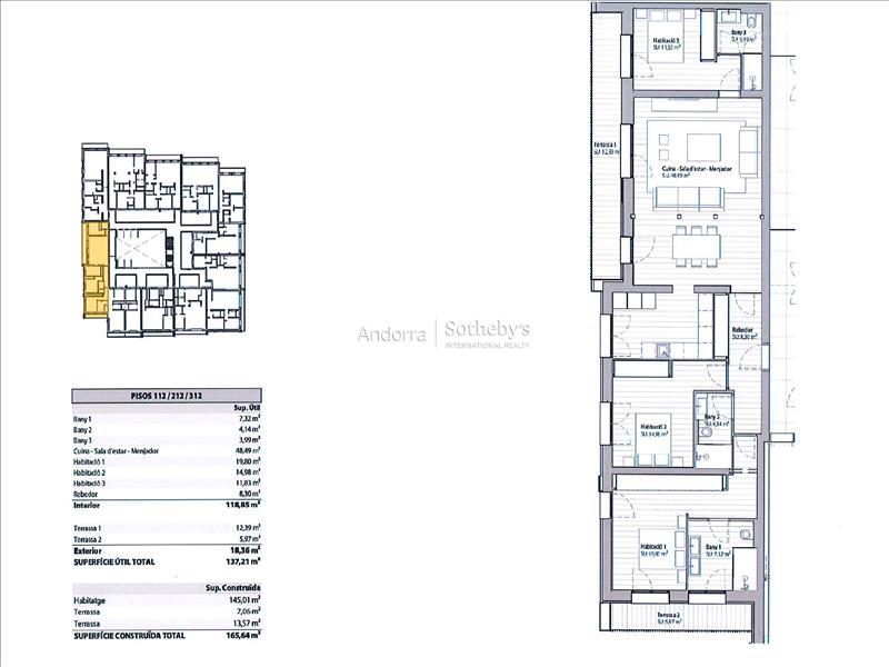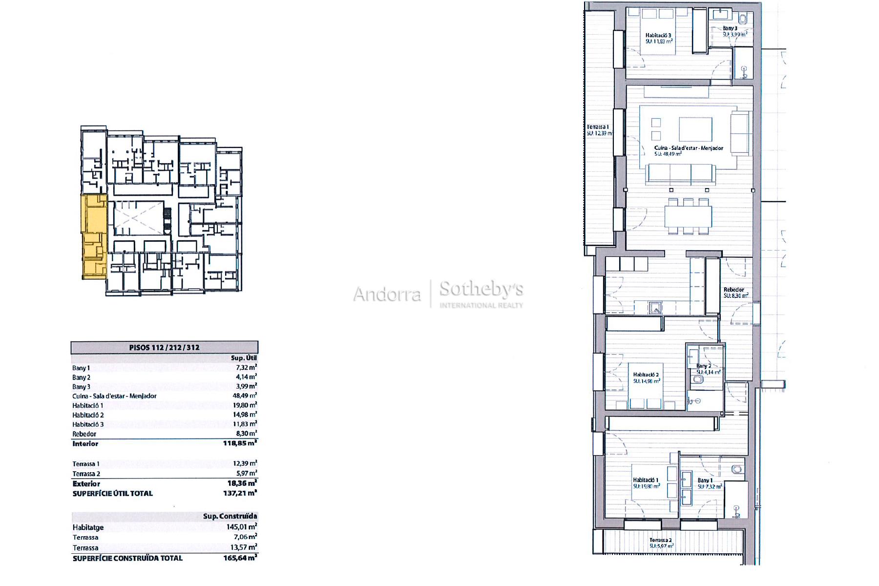Descubre esta magnífica obra nueva ubicada en El Tarter. Con una superficie de 165,64 m2, esta propiedad ofrece un espacio moderno y espacioso para disfrutarlo al máximo. La cocina, integrada en el salón comedor, crea un ambiente acogedor y funcional. Desde aquí podrás acceder a una encantadora terraza de 20,63m2 con vistas. Con tres amplias habitaciones dobles, incluyendo una suite impresionante, y tres baños completos, este hogar es perfecto para aquellos que buscan comodidad y estilo. El edificio cuenta con box privado para dos coches, lo que brinda una comodidad adicional y permite tener tus vehículos protegidos del frío y la nieve. Esta propiedad está equipada con características de alta calidad, como iluminación LED de bajo consumo, suelo radiante y una elegante chimenea eléctrica. Además, cuenta con domótica que te permite controlar y gestionar fácilmente los sistemas del hogar desde su teléfono inteligente. Los electrodomésticos de primera calidad le ofrecen una experiencia culinaria excepcional, mientras que los suelos radiantes, y de gres porcelánico añaden un toque cálido, de sofisticación y durabilidad. La comunidad dispone de un spa y una zona de relax comunitario, donde podrás disfrutar de piscinas y jacuzzis, creando un ambiente de bienestar y relajación. Además un patio central con zona verde completa este entorno, proporcionando un espacio tranquilo y natural. No pierdas la oportunidad de vivir en esta maravillosa propiedad en El Tarter.Características
