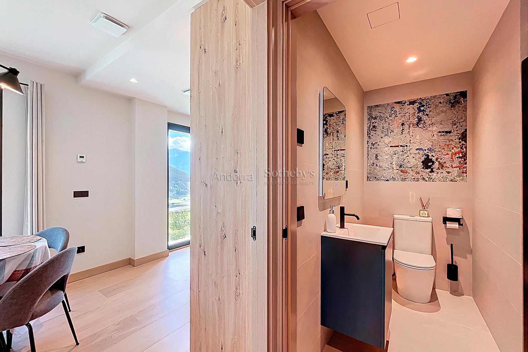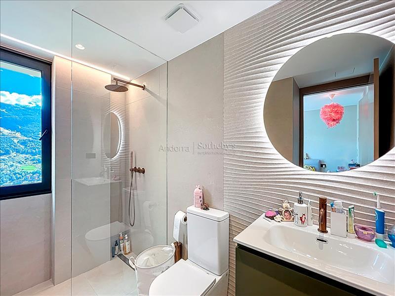 Situada en la prestigiosa carretera de Montaup, esta exclusiva casa de lujo ofrece unas vistas insuperables que abarcan desde la zona norte hasta el sur, mostrando la belleza natural y el entorno privilegiado de Canillo. Actualmente en proceso de reforma, esta propiedad combina un diseño moderno con espacios funcionales y exquisitamente estéticos, ideados para disfrutar de una vida tranquila y privada. La residencia ocupa una parcela de 960 m² y cuenta con aproximadamente 412 m² construidos distribuidos en tres plantas. La entrada principal da paso a un amplio salón-comedor con una cocina en fase de finalización, diseñada para ser el espacio ideal para pasar momentos de calidad con la familia y amigos. En la planta -1, se encuentran dos suites principales y dos suites adicionales, así como una lavandería, que ofrecen espacios de descanso y privacidad para los residentes y visitantes. La planta -2 está dedicada a un spa privado, equipado con jacuzzi, sauna, sala de ocio y un pequeño apartamento con salón-comedor, cocina, dormitorio doble y baño completo, con salida directa al jardín. Este espacio exterior se convierte en un refugio de relax, perfectamente conectado con la zona de ocio y el apartamento, todo pensado para disfrutar de momentos de tranquilidad y actividades al aire libre. Además, está equipada con ascensor, aire acondicionado, sistema de aerotermia, calefacción por suelo radiante y doble acristalamiento, garantizando un confort excelente durante todo el año. Como elementos de comodidad adicionales, cuenta con dos plazas de aparcamiento y espacios exteriores que aprovechan al máximo el entorno natural y las espectaculares vistas que la rodean. Esta es una oportunidad única para adquirir una propiedad de lujo en Canillo, que combina a la perfección el diseño contemporáneo con servicios y acabados de alta calidad. No dudes en ponerte en contacto con nosotros para más información o para concertar una visita privada.