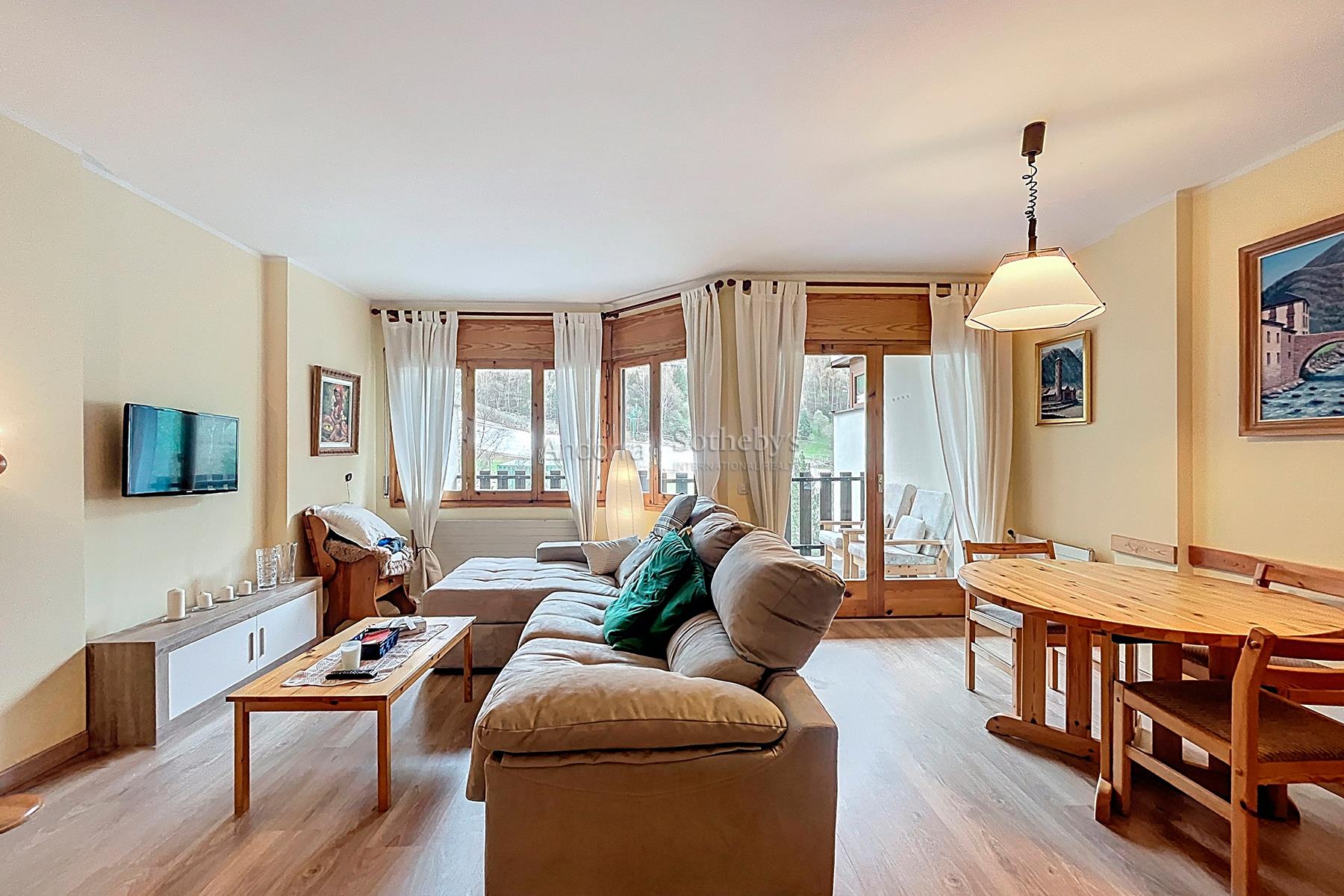 Discover this charming rustic apartment of nearly 100 m², ideal for nature and skiing lovers, located in Incles, close to the Canaro ski station and the Grandvalira slopes, as well as Soldeu and El Tarter. The apartment features a spacious living-dining room with access to a terrace with spectacular views, perfect for enjoying mountain landscapes at any time of the year. The separate kitchen has a pass-through window, making it easy to connect with the living area. On a separate level accessed by stairs, you'll find three bedrooms: one double, one exterior single, and one interior single, ideal for family or guests. It also has two bathrooms for your convenience. This property includes a parking space and a storage room, providing additional space for sports equipment and personal items. Its strategic location ensures excellent communication with the Incles valley and is close to the Franco-Andorran border, facilitating access to various activities and services. Don't miss the opportunity to make this apartment your mountain retreat!Features