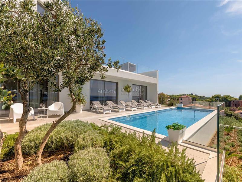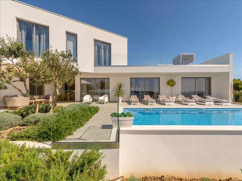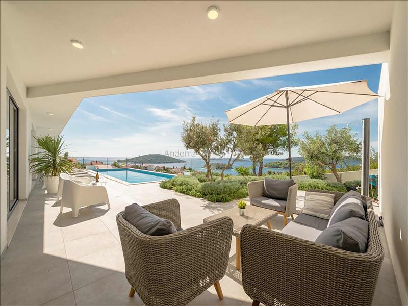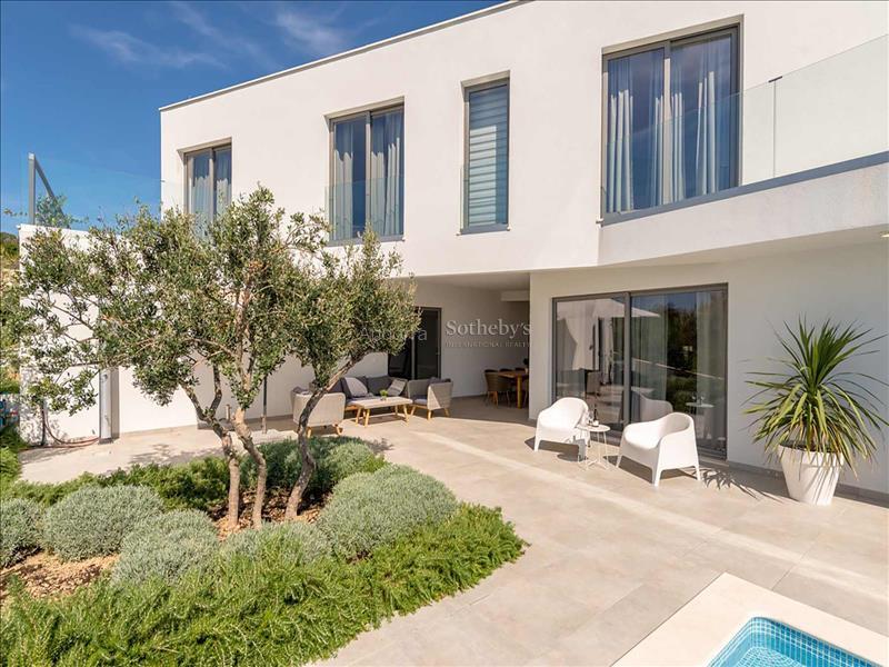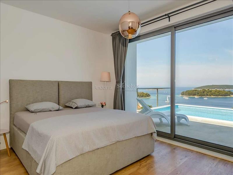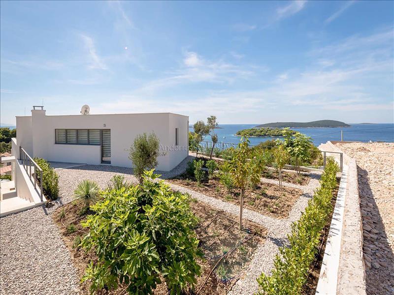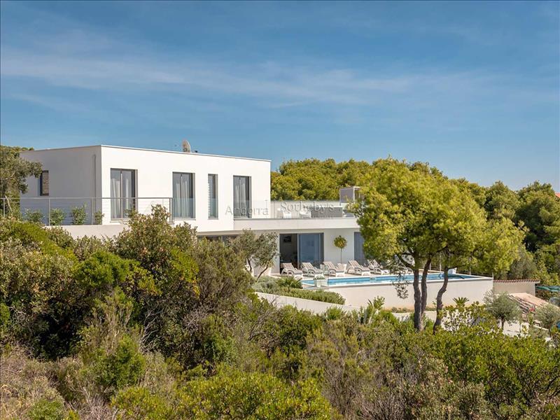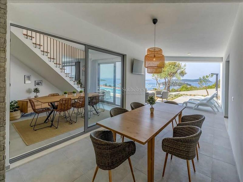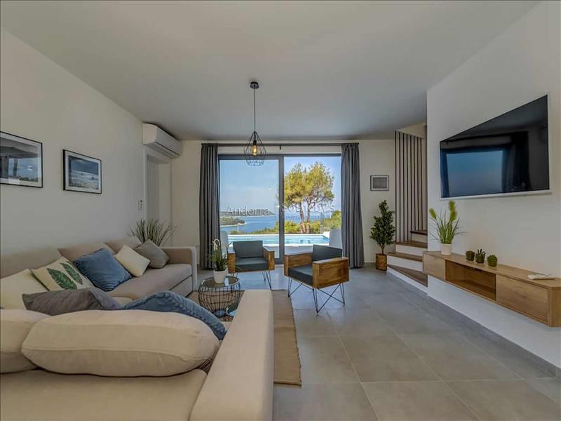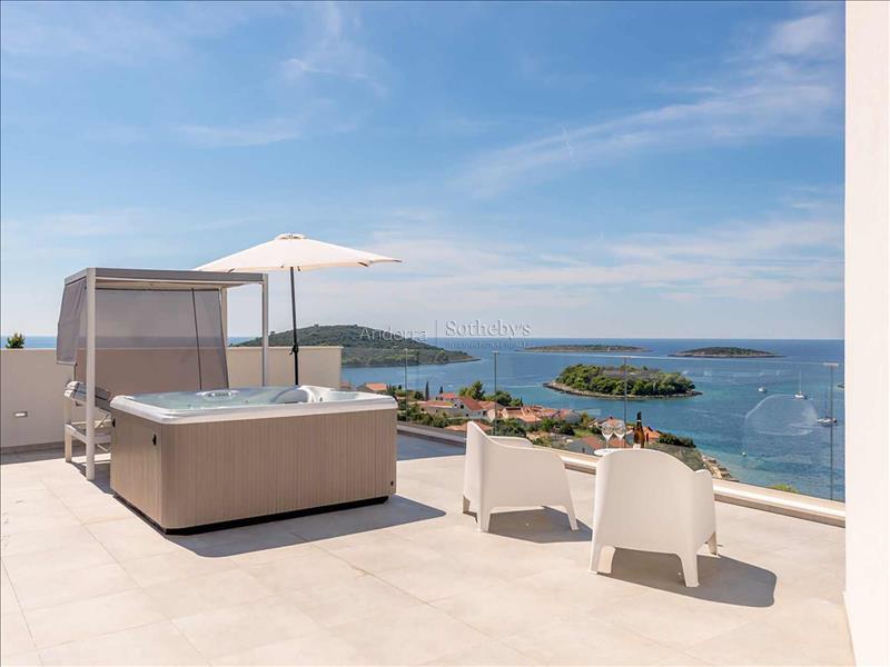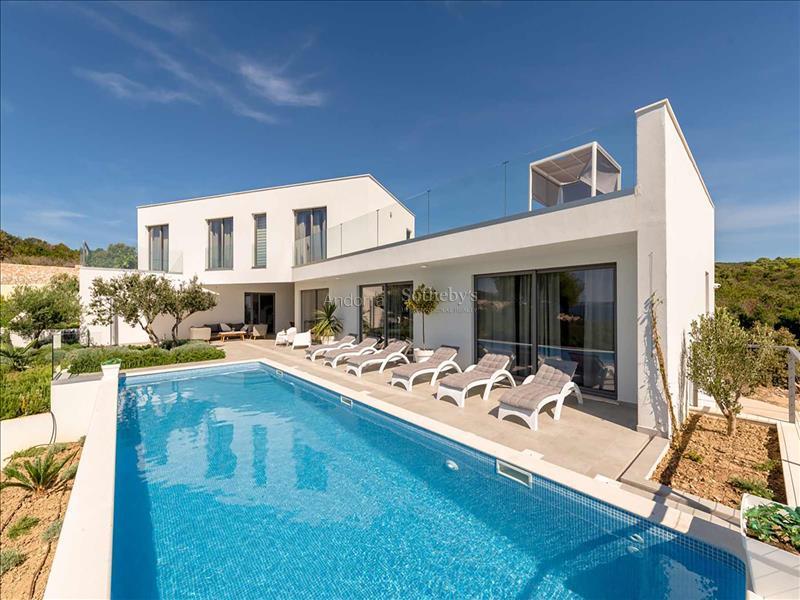 A recently built, modern villa with spectacular sea and islands view is located on the island of Solta, which is only 9 nautical miles away from the largest Dalmatian city - Split. The property captures attention with its contemporary exterior adorned with clean lines and large glass surfaces that open up the interior space towards the beautiful outdoor area and unspoiled natural surroundings. Villa Amalia is a luxurious property situated on a plot of 800 m2 with a total living space area of 268 square meters. Due to its modern floor plan, the villa offers maximum space utilisation and functionality and provides the utmost comfort of stay all year round. The completely furnished villa has four bedrooms with private bathrooms, a spacious living room, a toilet facility, a kitchen, a dining room, a wine cellar, a fitness room with sauna, two storage rooms, a large basement, a mechanical room, an outdoor summer kitchen with a grill, as well as a roofed outdoor dining area and an open terrace of 70 m2 with a whirlpool tub for memorable summer gatherings al fresco. It also features a heated swimming pool (11 x 3,5 meters) and spacious sunbathing areas overlooking the sea. All the rooms are air-conditioned and fully fitted with top-notch equipment. The villa is surrounded by a rosemary and lavender garden with fruit and palm trees and has its private parking place with electric fence. The marvelous views to the sea and the Mediterranean landscape provide an intimate and welcoming ambiance which ideally complements the elegant and modern interior design of the villa. The villa is at walking distance from the village and award-winning harbour of Martinis Marchi with many restaurants, bars and shops.Features