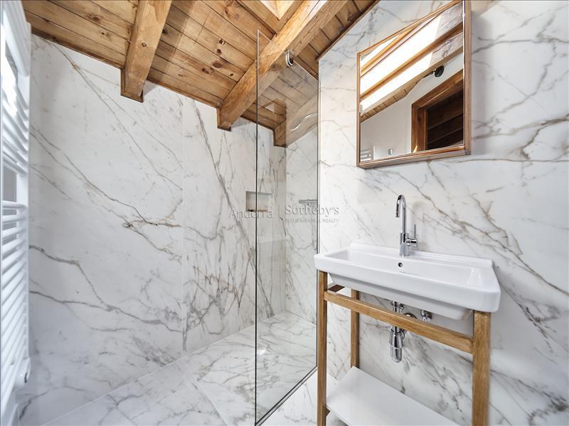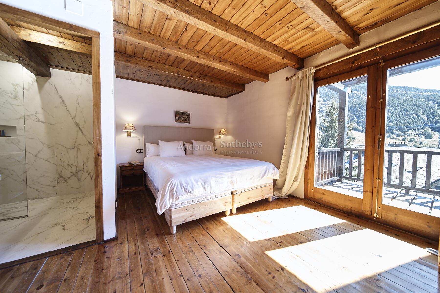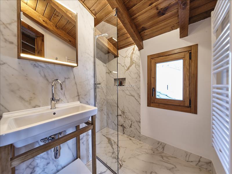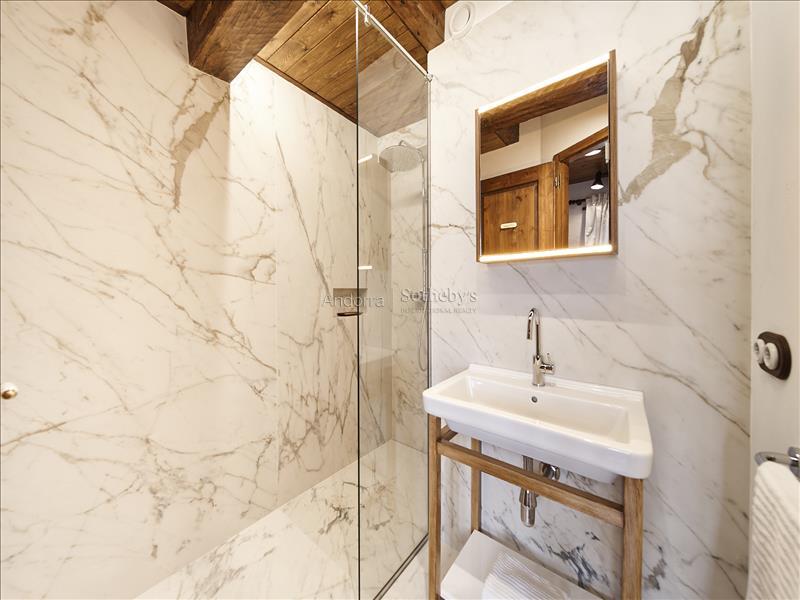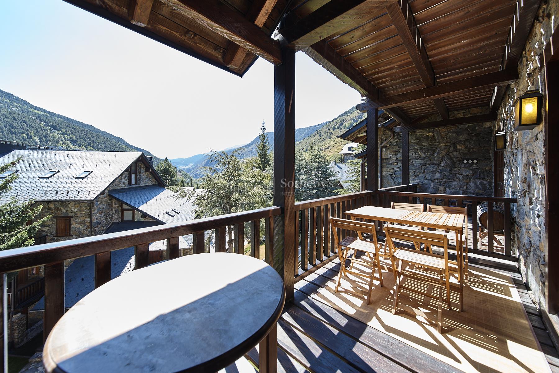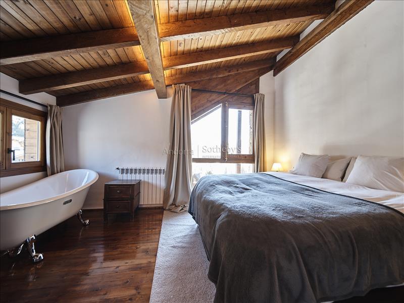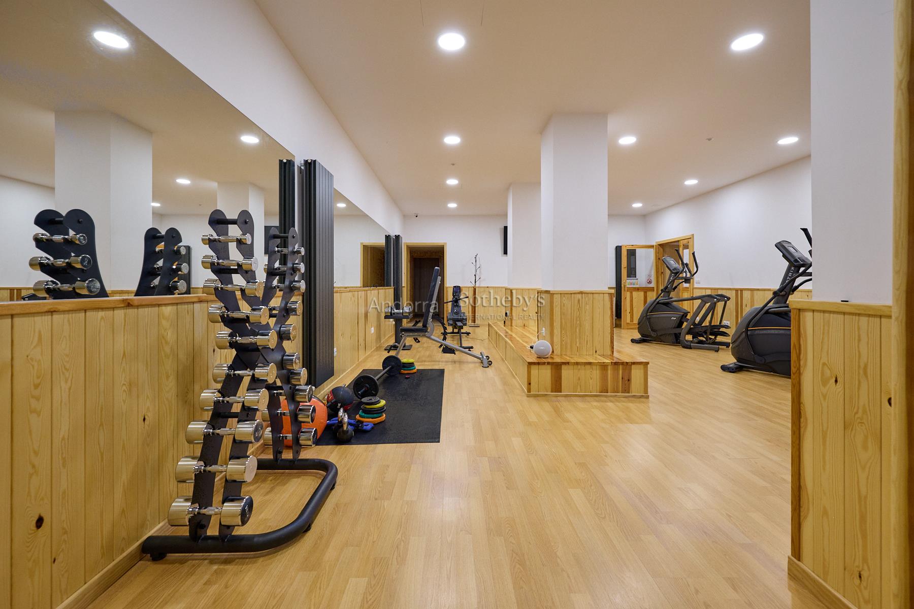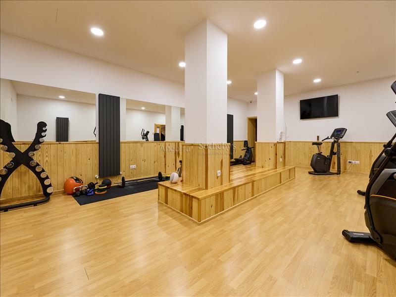 Extraordinary approximately 165 m² triplex for sale in the exclusive residential area of La Pleta del Tarter (Canillo), one of the best mountain leisure areas in the Principality of Andorra and throughout the Pyrenees, directly in front of the Grandvalira ski slopes and close to the main cable car. The property maintains the high mountain design typical of Andorra with a modern rustic style, both exterior and interior, where wood and stone are the main features, providing warmth and exceptional comfort. It is distributed over 3 south-west facing floors, allowing you to enjoy sunlight almost all day year-round. The entrance is on the ground floor, featuring a spacious hall with a built-in wardrobe and a wooden ski storage rack. This level includes the daytime area with a cozy lounge centered around an impressive fireplace and access to a terrace with views of the Tarter slopes and the south of the Vall de la Comella, as well as a dining area with a beautifully designed open kitchen fully equipped with built-in appliances, rustic ceramic countertops, and plenty of storage space in various cabinets and solid wood drawers. On the first floor is the sleeping area with 2 en-suite bedrooms. The first is a room with a bathroom with a shower and a large built-in wardrobe. The other bedroom is completely exterior with access to a terrace offering stunning views of the Tarter slopes, with double wardrobes, one of which is built-in, and a shower bathroom. This floor also has a separate WC. The upper floor, under the roof with visible wooden beams and Velux windows that flood the staircase area with natural light, features a double en-suite bedroom with an external window, a bathroom with a shower, and a vintage clawfoot bathtub. There is also a second en-suite bedroom with a shower bathroom and a built-in wardrobe. The views from this room are spectacular. The two bedrooms share a bathroom located between them. The finishes are of the highest quality, with hardwood floors throughout except in the bathrooms and kitchen, and double-glazed windows for perfect thermal and sound insulation. The property includes a designated parking space and a storage room in the building’s garage for added convenience. Additionally, there is a shared gym and sauna area, with a meeting and activity room. Thanks to its high-quality construction and its exclusive location in one of the premium mountain areas of the Pyrenees, and possibly all of Europe, this residence offers a fantastic opportunity for lovers of nature and winter sports, where tranquility, privacy, and comfort blend seamlessly with an exceptional natural setting of forests and mountains.Features