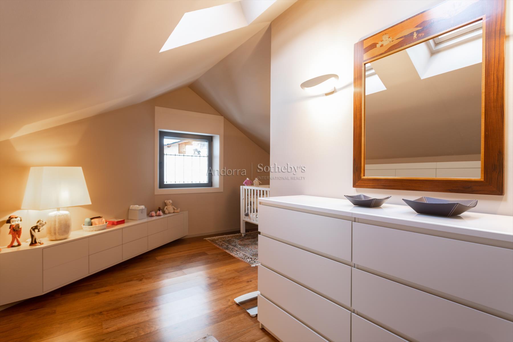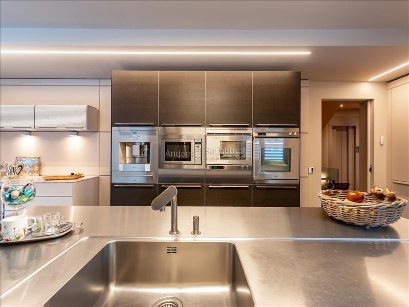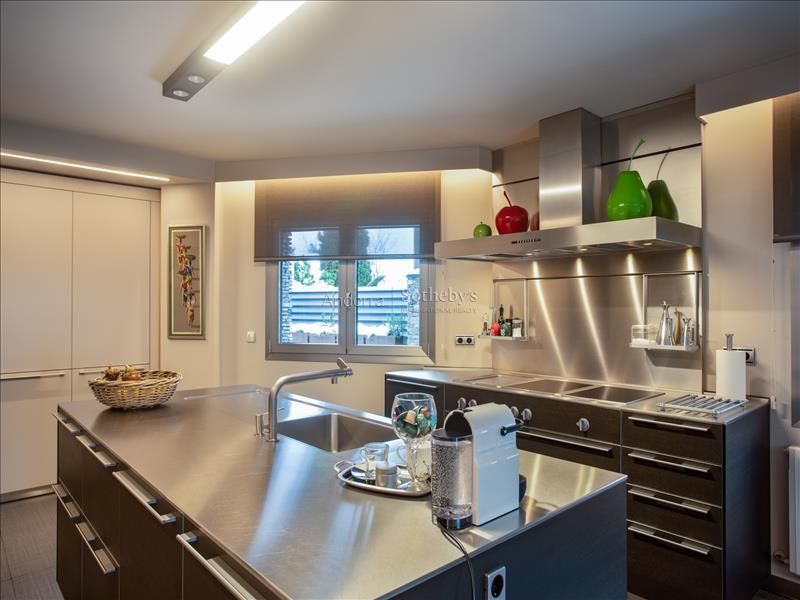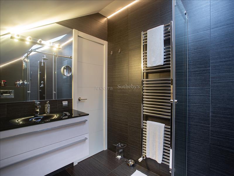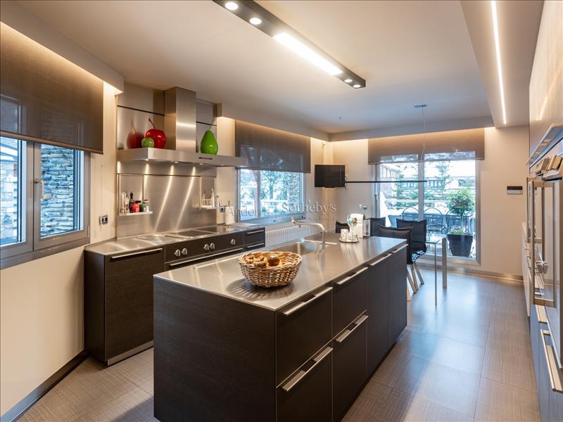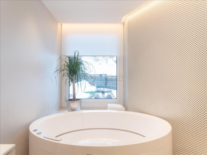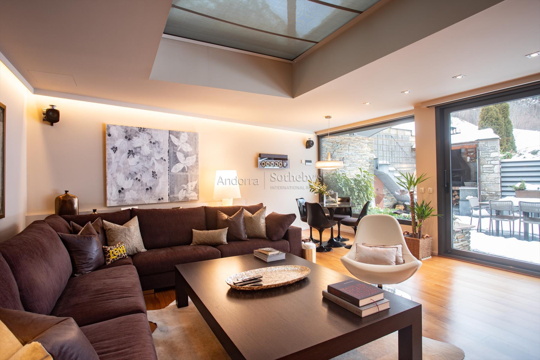 This exclusive 500m2 villa for sale is located in the heart of La Massana, a few minutes' walk from all shops, services and the cable car for access to the slopes of Grandvalira in the Pal-Arinsal sector, in a residential area very calm family and perfectly communicated. The house is divided into 4 floors, all connected by an elevator and an internal wooden staircase, and has two terraced garden areas. We enter the house and there are 2 interconnected garages, with capacity for about 5 or 6 cars, and a room for celebrations with friends and/or family. The room has a long and complete kitchen bar, with a large wooden table, a fireplace, and following the wall, an infinite bench to create a warm and familiar atmosphere. In this space we also find a cellar. The other part of the garage has a courtesy toilet, all modern, a spacious and equipped laundry room, with sink and water connections. The rest of the room has a large closet for storage. There is also the hall from the garage at the entrance of the house, with the lift, a small dressing room and a study-office. We arrive by the wooden staircase to the hall on the first floor, where there is the day area. The doors to the dining room are sliding glass doors. The area equipped as a living room, with large corner sofas, and a small table for informal meals, has a ceiling that is a window that can be opened and closed with an automated ceiling curtain. Attached to the living room is a specific room for noble dining, and access to the large terrace with underfloor heating, barbecue area and spectacular views towards all of La Massana, and the cable car to Pal. The kitchen, separate, exquisite and equipped, here, with the highest range appliances. In this kitchen we also have a table for more daily and family meals. From the kitchen you can also access the terrace. On the second floor is where the night area is. We have a first master suite, with a large dressing room, and a large full bathroom with a round hydromassage bathtub, through which the water comes out creating a waterfall effect, and which is placed next to the window through which you can also access the terrace. We find two double bedrooms, with built-in wardrobes, and a complete bathroom with hydromassage shower. The ground floor of the house is dedicated exclusively to the second master suite, the main one. It has a very spacious dressing room. The bathroom has a shower and a skylight with natural light. This room also has a balcony with fantastic views. The finishes of the entire property are highly luxurious with, among others, noble parquet floors in the rooms, stoneware, slate or synthetic floors in the bathrooms and kitchen, home automation system, double-glazed windows with gas chamber and some triple glazing for perfect thermo-acoustic insulation, and fully LED lighting in all rooms, which significantly reduces the environmental impact and the house's electricity bill.Features