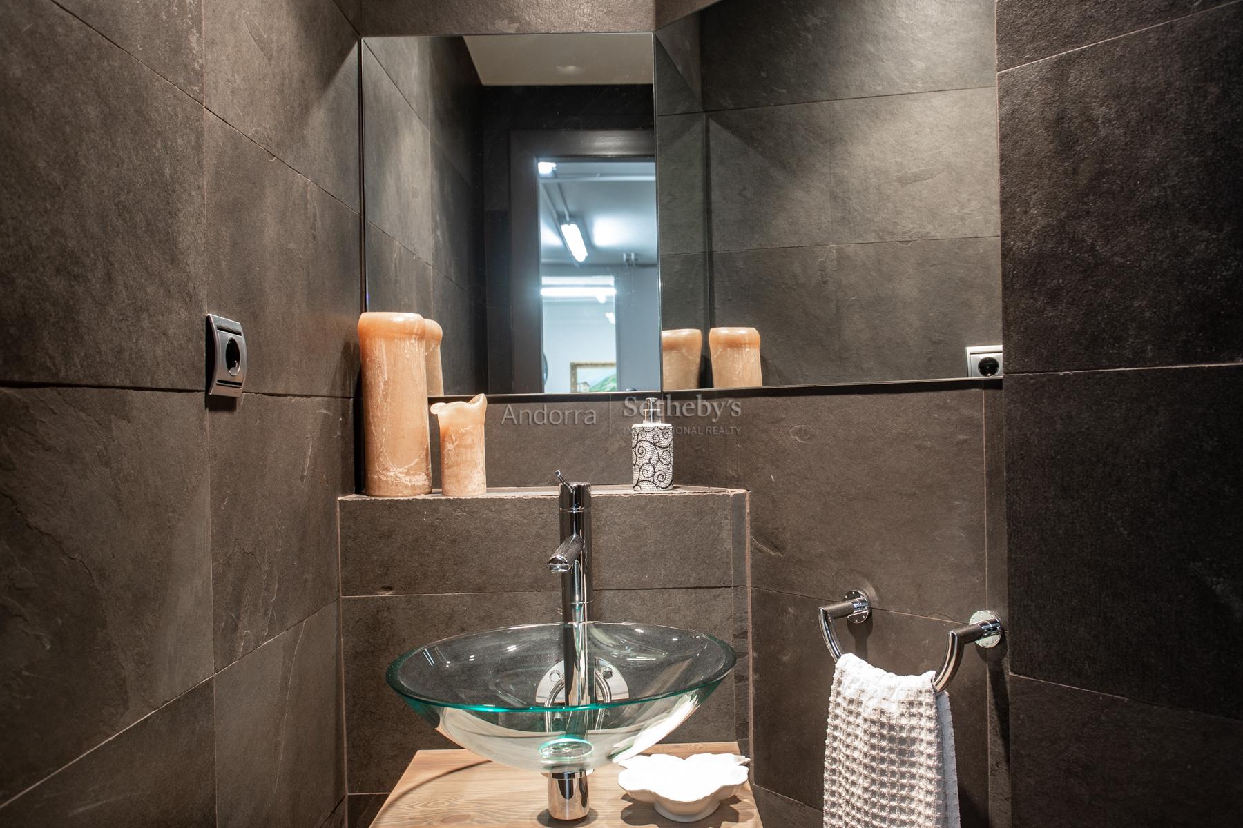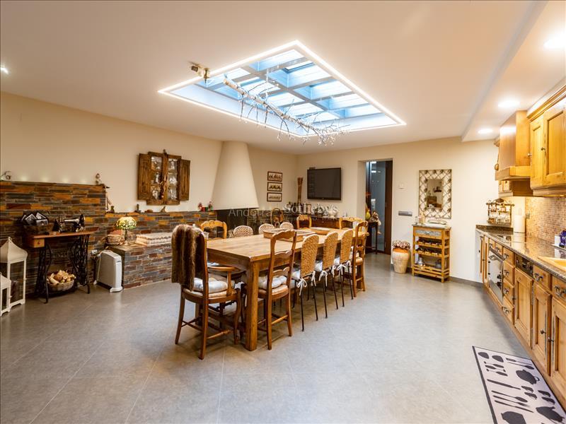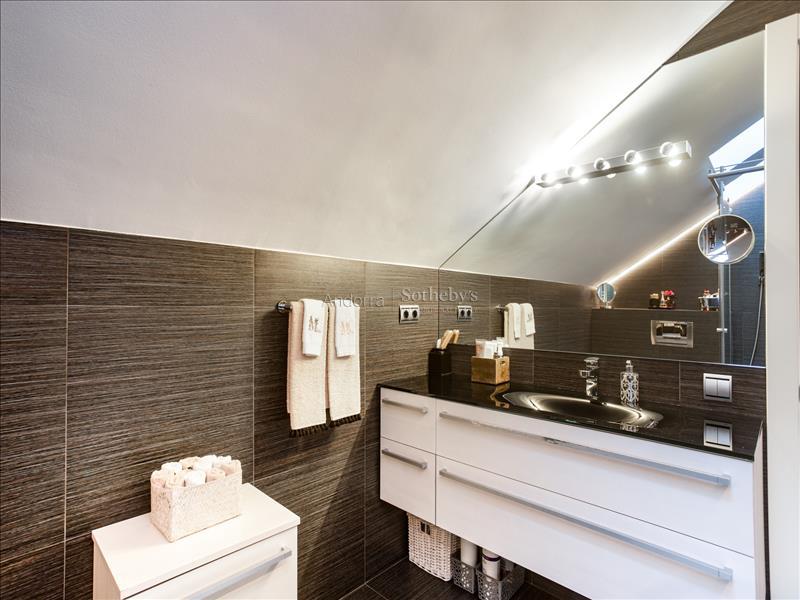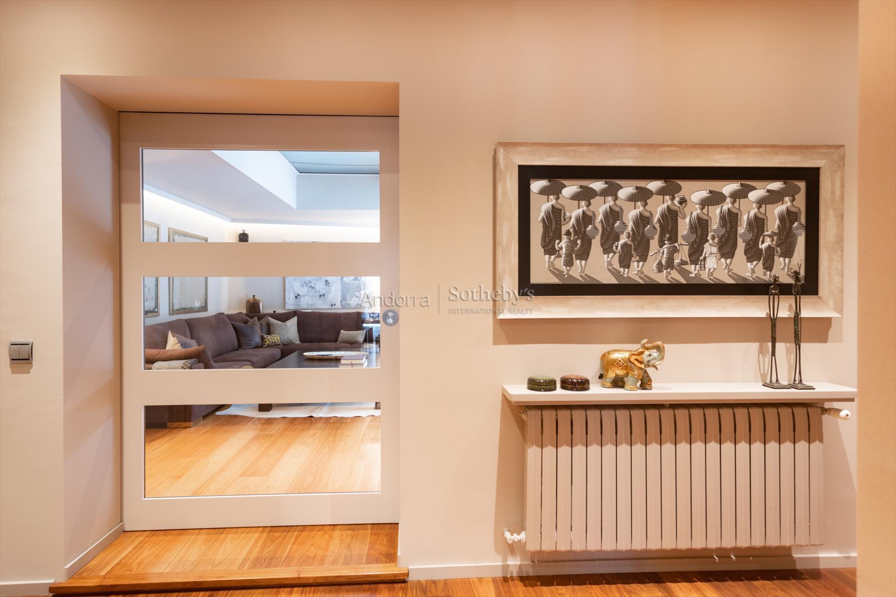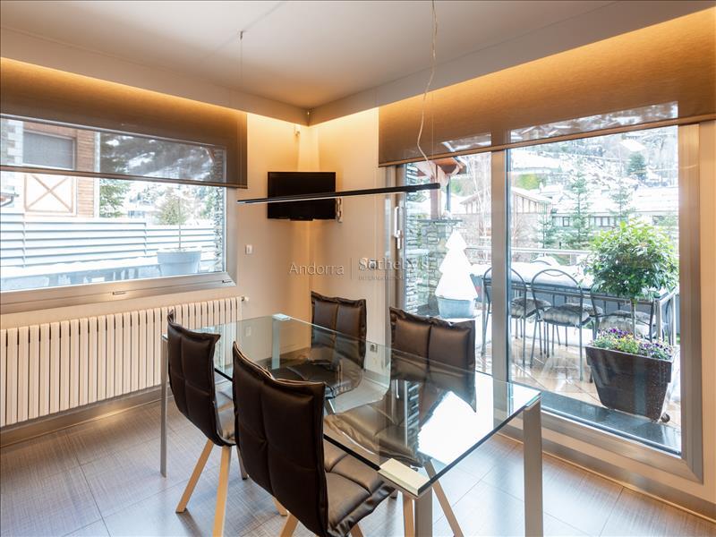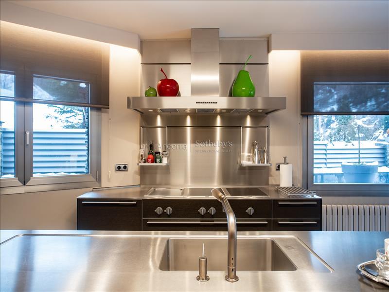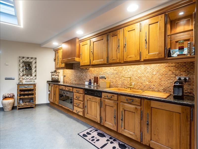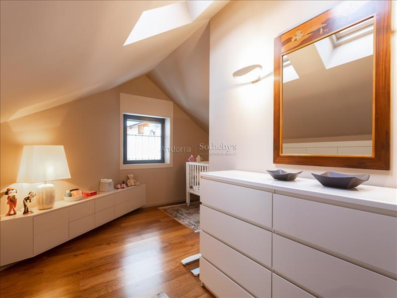 This exclusive 500m2 villa for sale is located in the heart of La Massana, a few minutes' walk from all shops, services and the cable car for access to the slopes of Grandvalira in the Pal-Arinsal sector, in a residential area very calm family and perfectly communicated. The house is divided into 4 floors, all connected by an elevator and an internal wooden staircase, and has two terraced garden areas. We enter the house and there are 2 interconnected garages, with capacity for about 5 or 6 cars, and a room for celebrations with friends and/or family. The room has a long and complete kitchen bar, with a large wooden table, a fireplace, and following the wall, an infinite bench to create a warm and familiar atmosphere. In this space we also find a cellar. The other part of the garage has a courtesy toilet, all modern, a spacious and equipped laundry room, with sink and water connections. The rest of the room has a large closet for storage. There is also the hall from the garage at the entrance of the house, with the lift, a small dressing room and a study-office. We arrive by the wooden staircase to the hall on the first floor, where there is the day area. The doors to the dining room are sliding glass doors. The area equipped as a living room, with large corner sofas, and a small table for informal meals, has a ceiling that is a window that can be opened and closed with an automated ceiling curtain. Attached to the living room is a specific room for noble dining, and access to the large terrace with underfloor heating, barbecue area and spectacular views towards all of La Massana, and the cable car to Pal. The kitchen, separate, exquisite and equipped, here, with the highest range appliances. In this kitchen we also have a table for more daily and family meals. From the kitchen you can also access the terrace. On the second floor is where the night area is. We have a first master suite, with a large dressing room, and a large full bathroom with a round hydromassage bathtub, through which the water comes out creating a waterfall effect, and which is placed next to the window through which you can also access the terrace. We find two double bedrooms, with built-in wardrobes, and a complete bathroom with hydromassage shower. The ground floor of the house is dedicated exclusively to the second master suite, the main one. It has a very spacious dressing room. The bathroom has a shower and a skylight with natural light. This room also has a balcony with fantastic views. The finishes of the entire property are highly luxurious with, among others, noble parquet floors in the rooms, stoneware, slate or synthetic floors in the bathrooms and kitchen, home automation system, double-glazed windows with gas chamber and some triple glazing for perfect thermo-acoustic insulation, and fully LED lighting in all rooms, which significantly reduces the environmental impact and the house's electricity bill.Features
