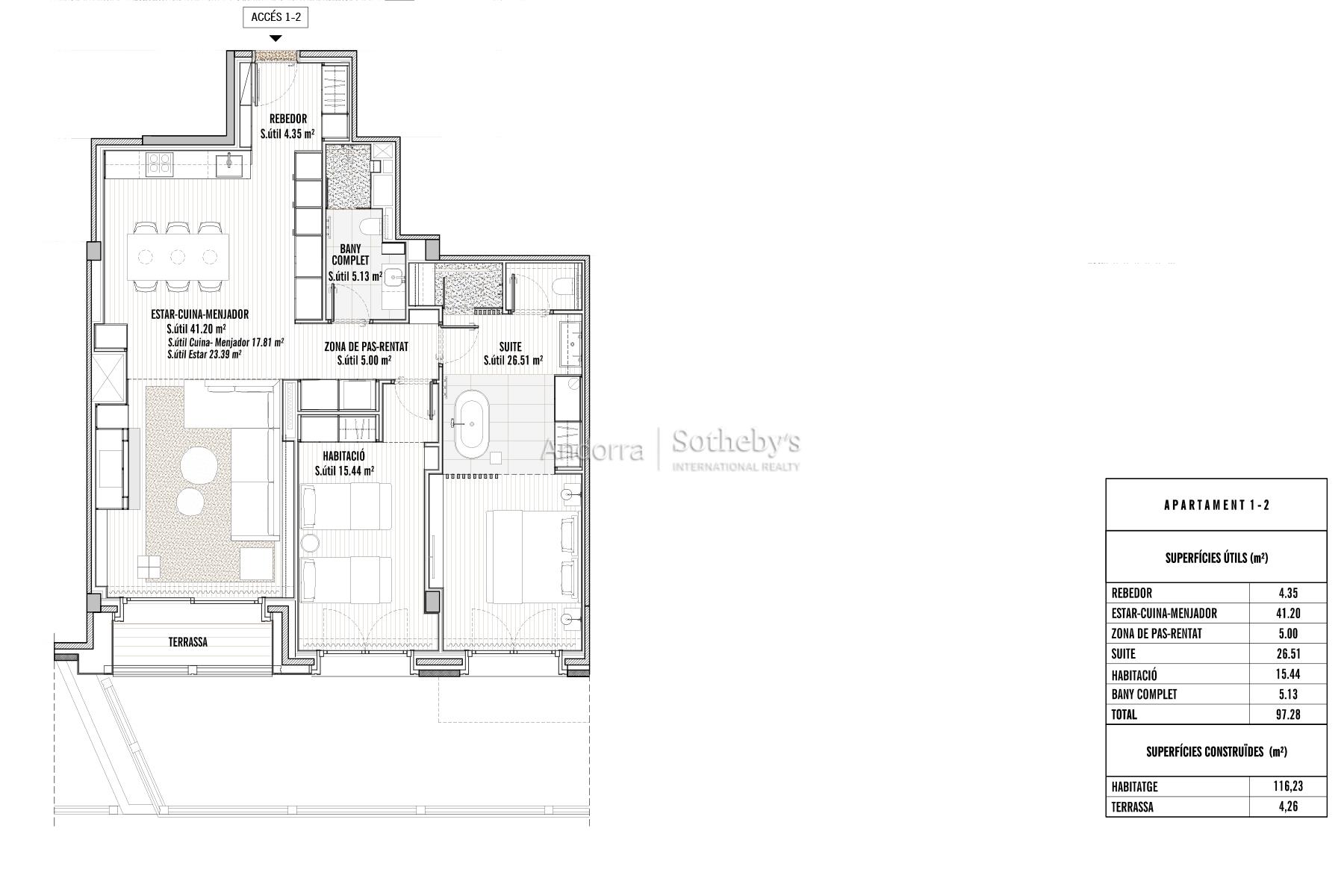 Welcome to a luxury retreat situated in the heart of the Pyrenees, at the foot of the slopes of the wonderful village of Soldeu. This newly constructed apartment offers a unique experience where nature merges with contemporary design, creating an ideal space for those seeking serenity and elegance. With 116 m² of sophistication, this home stands out for its structure that breathes nature, built with native pine wood and stone that perfectly integrates with its surroundings. It features an open kitchen that flows into the living room, inviting unforgettable moments of togetherness. With two double bedrooms and two full bathrooms, every detail has been designed to offer comfort and functionality. Its shared terrace with the suite and living room allows you to enjoy spectacular views of the Grandvalira ski slopes. The large windows, with strategic orientation, let natural light flow inside, immersing every room in the beauty of the snow-capped peaks. Additionally, the apartment includes a private parking box for two cars, adding extra convenience to daily life. Here, luxury is not only defined by quality but also by extreme simplicity; every moment becomes an enriching experience where comfort merges with an exclusive lifestyle. Thus, in this apartment, every dawn awakens with the murmur of the Valira River, the aroma of aromatic herbs, and the majestic silence of the Pyrenees. Experience the magic of this space, where nature is not only observed but felt and embraced. A unique place for those who wish to coexist with the pure essence of life in the heart of the Andorran mountains.Features