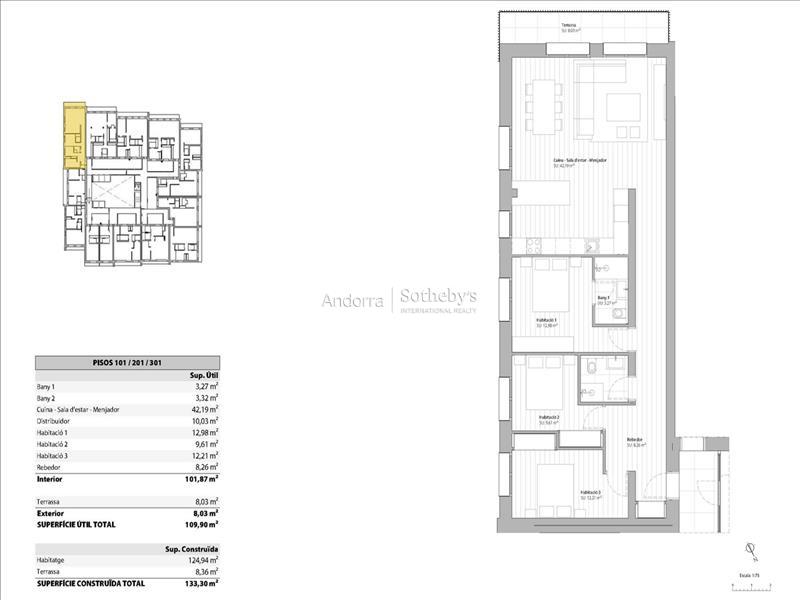 Discover this magnificent new work located in El Tarter. With an area of 133.30m2, this property offers a modern and spacious space to enjoy it to the fullest. The kitchen, integrated into the living room, creates a cozy and functional atmosphere. From here you can access a charming 8.36m2 terrace with views. With three spacious double bedrooms, including a stunning suite, and two full bathrooms, this home is perfect for those seeking comfort and style. The building has a private garage for two cars, which provides additional comfort and allows you to have your vehicles protected from the cold and snow. This property is fitted with high quality features including energy efficient LED lighting, underfloor heating and an elegant electric fireplace. In addition, it has home automation that allows you to easily control and manage home systems from your smartphone. Top-quality appliances offer you an exceptional culinary experience, while radiant floors and porcelain stoneware add a touch of warmth, sophistication and durability. The community has a spa and a community relaxation area, where you can enjoy swimming pools and jacuzzis, creating an atmosphere of well-being and relaxation. In addition, a central courtyard with a green area completes this environment, providing a quiet and natural space. Don't miss the opportunity to live in this wonderful property in El Tarter.Features