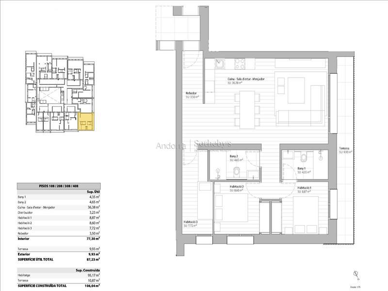 Discover this magnificent new work located in El Tarter. With an area of 106.03m2, this property offers a modern and spacious space to enjoy it to the fullest. The kitchen, integrated into the living room, creates a cozy and functional atmosphere. From here you can access a lovely 10.86m2 terrace with views. With two spacious double bedrooms, including a stunning suite, and two full bathrooms, this home is perfect for those looking for comfort and style. The building has a private garage for two cars, which provides additional comfort and allows you to have your vehicles protected from the cold and snow. This property is fitted with high quality features including energy efficient LED lighting, underfloor heating and an elegant electric fireplace. In addition, it has home automation that allows you to easily control and manage home systems from your smartphone. Top-quality appliances offer you an exceptional culinary experience, while radiant floors and porcelain stoneware add a touch of warmth, sophistication and durability. The community has a spa and a community relaxation area, where you can enjoy swimming pools and jacuzzis, creating an atmosphere of well-being and relaxation. In addition, a central courtyard with a green area completes this environment, providing a quiet and natural space. Don't miss the opportunity to live in this wonderful property in El Tarter.Features
