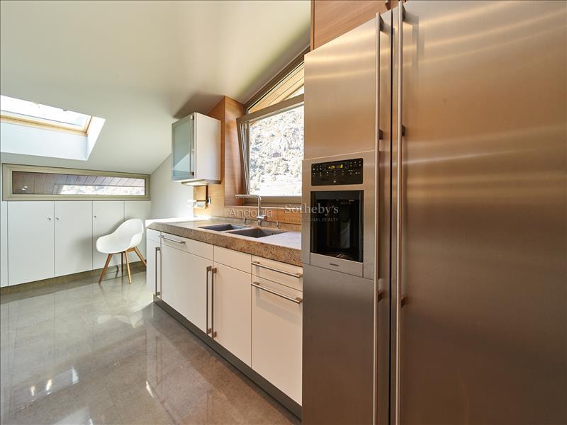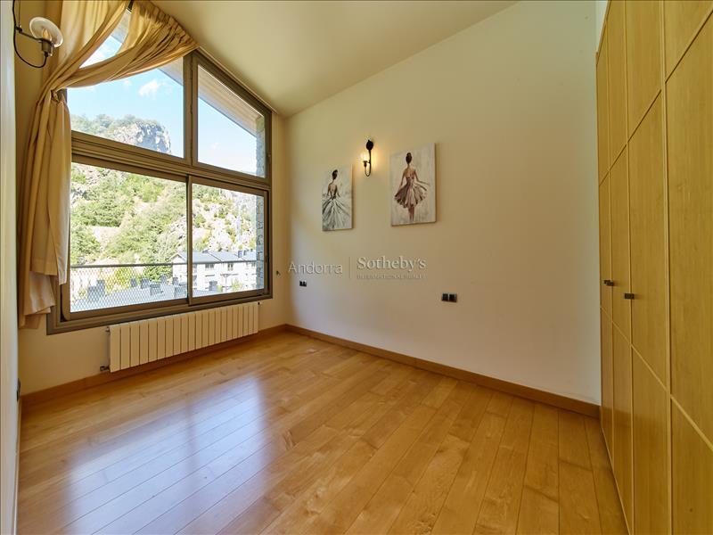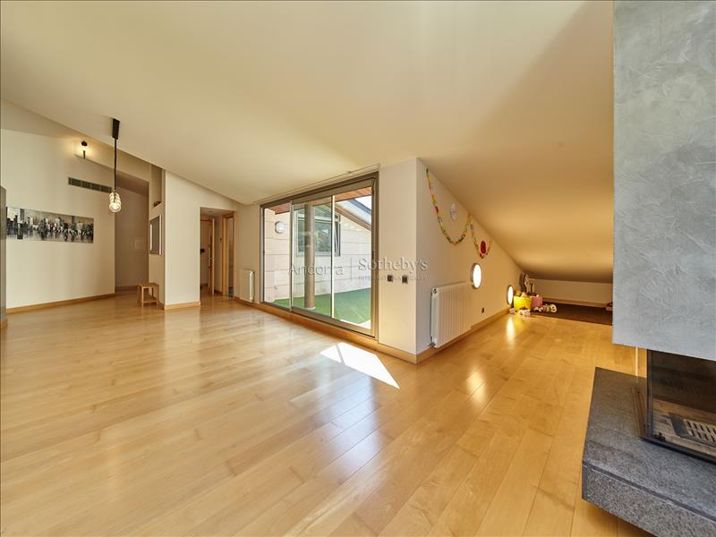 Spectacular luxury penthouse for rent in one of the most prestigious residential areas of Escaldes-Engordany. Just minutes away are the Caldea thermal spa, the Inúu wellness center, and the main shopping center of Escaldes-Engordany with all services available. This magnificent apartment spans 195m² on a single level, distributed in a large living-dining room, divided into two areas by a fireplace. From this area, you can enjoy views of a modern kitchen with a sliding door, fully equipped with high-quality appliances, plenty of storage space, and a large laundry area. The living room provides access to a sunny terrace with spectacular views. The sleeping area includes a suite with a full bathroom. There is also a spacious single bedroom with built-in wardrobes and a second single bedroom, also with built-in wardrobes. Finally, there is a full bathroom with a shower and a practical hallway with a built-in closet. The property features a closed garage box with capacity for two cars, plus the possibility of an additional parking space. The orientation of this penthouse is favorable, enjoying good sunlight for most of the day, with plenty of natural light, and offering stunning panoramic views of the Escaldes-Engordany valley and Andorra la Vella, as well as the vibrant city center. This spectacular penthouse blends modern design with rustic elements, functionality with comfort, allowing you to create your own personal space. This rental is for long-term lease, not seasonal!Features